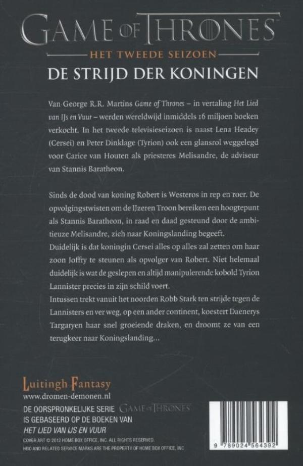 De Strijd der Koningen is het boek waarop het tweede seizoen van de spraakmakende HBO-televisieserie Game of Thrones is gebaseerd.
