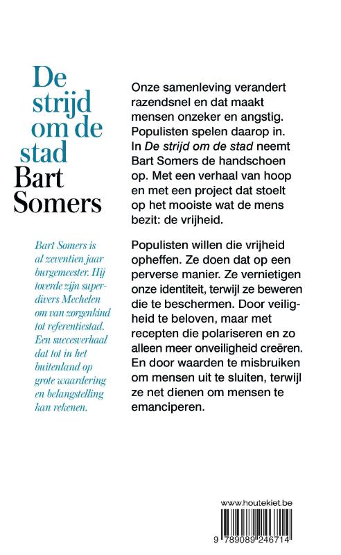 Onze samenleving verandert razendsnel en dat maakt mensen onzeker en angstig. Populisten spelen daarop in. In De strijd om de stad neemt Bart Somers de handschoen op. Met een verhaal van hoop en met een project dat stoelt op het mooiste wat de mens bezit: de vrijheid.