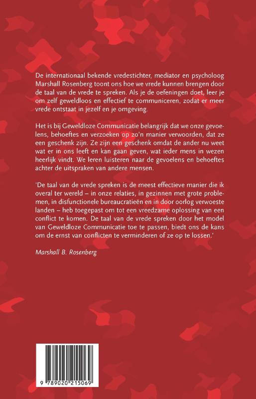 De internationaal bekende vredestichter, mediator en psycholoog Marshall Rosenberg toont ons hoe we vrede kunnen brengen door de taal van de vrede te spreken. Als je de oefeningen doet, leer je zelf geweldloos en effectief te communiceren, zodat er meer vrede ontstaat in jezelf en je omgeving.