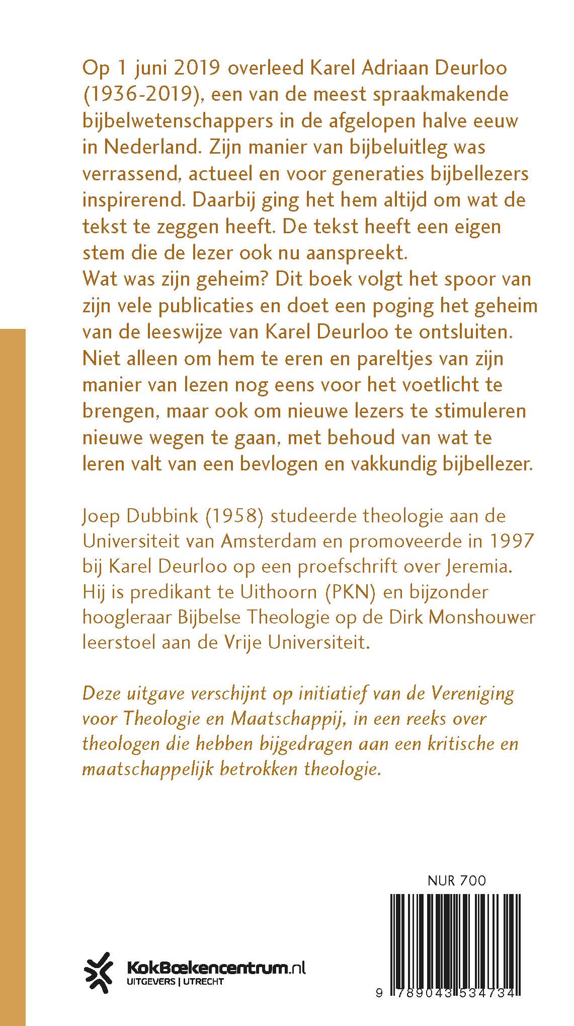 In 2019 overleed Karel Adriaan Deurloo (1936-2019), een van de meest spraakmakende bijbelwetenschappers in de afgelopen halve eeuw in Nederland. Zijn manier van bijbeluitleg was verrassend, actueel en voor generaties bijbellezers inspirerend. Daarbij ging het hem altijd om wat de tekst te zeggen heeft. De tekst heeft een eigen stem die de lezer ook nu aanspreekt.