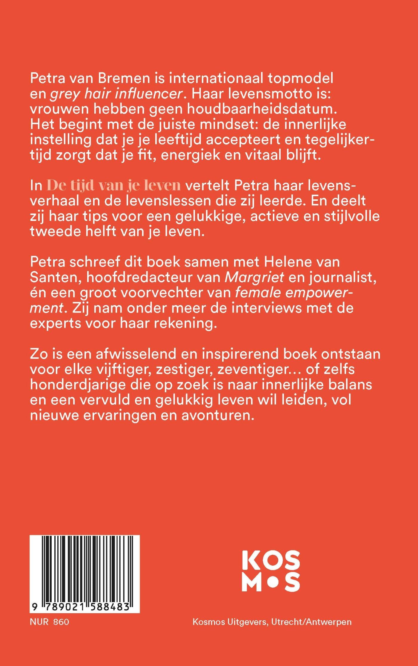 'De tijd van je leven' draait om het levensmotto van grey hair influencer Petra van Bremen: als vrouw heb je geen houdbaarheidsdatum Alles begint met de juiste mindset: de innerlijke instelling dat je je leeftijd accepteert en tegelijkertijd zorgt dat je fit, energiek en vitaal blijft. Body en mind gaan hand in hand. In dit boek deelt Petra haar tips voor een gelukkige en actieve tweede helft van je leven. Als rolmodel voor vrouwen met grijs haar pleit Petra voor natuurlijke schoonheid en is zij een boegbeeld voor 50+ empowerment.