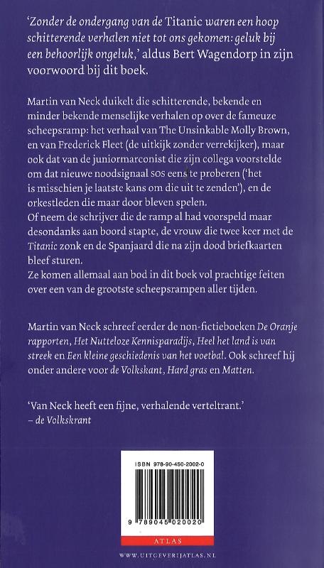 Ruim honderd jaar geleden zonk de onzinkbaar geachte Titanic. Dit boek vertelt niet alleen het verhaal van reddingsboot nr. 6, met aan boord Margaret Brown ('The unsinkable Molly Brown') en uitkijk Frederic Fleet ('Iceberg right ahead'), ook komen talloze andere opmerkelijke, bekende en onbekende, tragische en ontroerende verhalen en levensgeschiedenissen van bemanningsleden en passagiers aan bod.