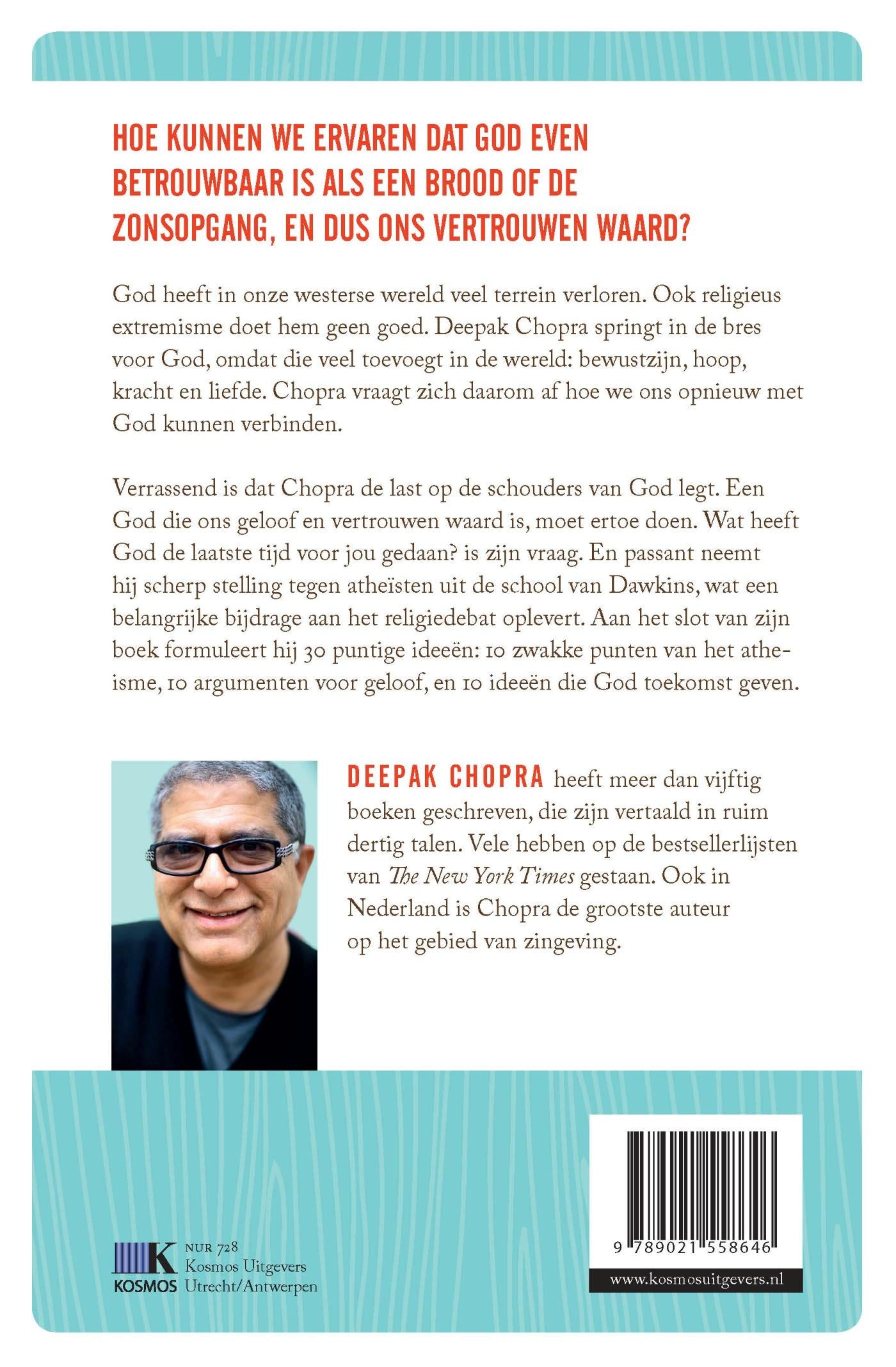 Deepak Chopra springt met zijn nieuwe boek op de bres voor God, want hij vindt dat God veel toevoegt in de wereld: bewustzijn, hoop, kracht en liefde. Voor deze kernwaarden komt Chopra op. God heeft namelijk in onze westerse wereld heel veel terrein verloren. En extremisme op basis van geloof in andere delen van de wereld vormt geen aantrekkelijk alternatief. Chopra betreurt dit en vraagt zich af hoe je je opnieuw met God kunt verbinden. Hoe kun je ervaren dat Hij even betrouwbaar is als een brood of de zonsopgang, en dus jouw vertrouwen waard?