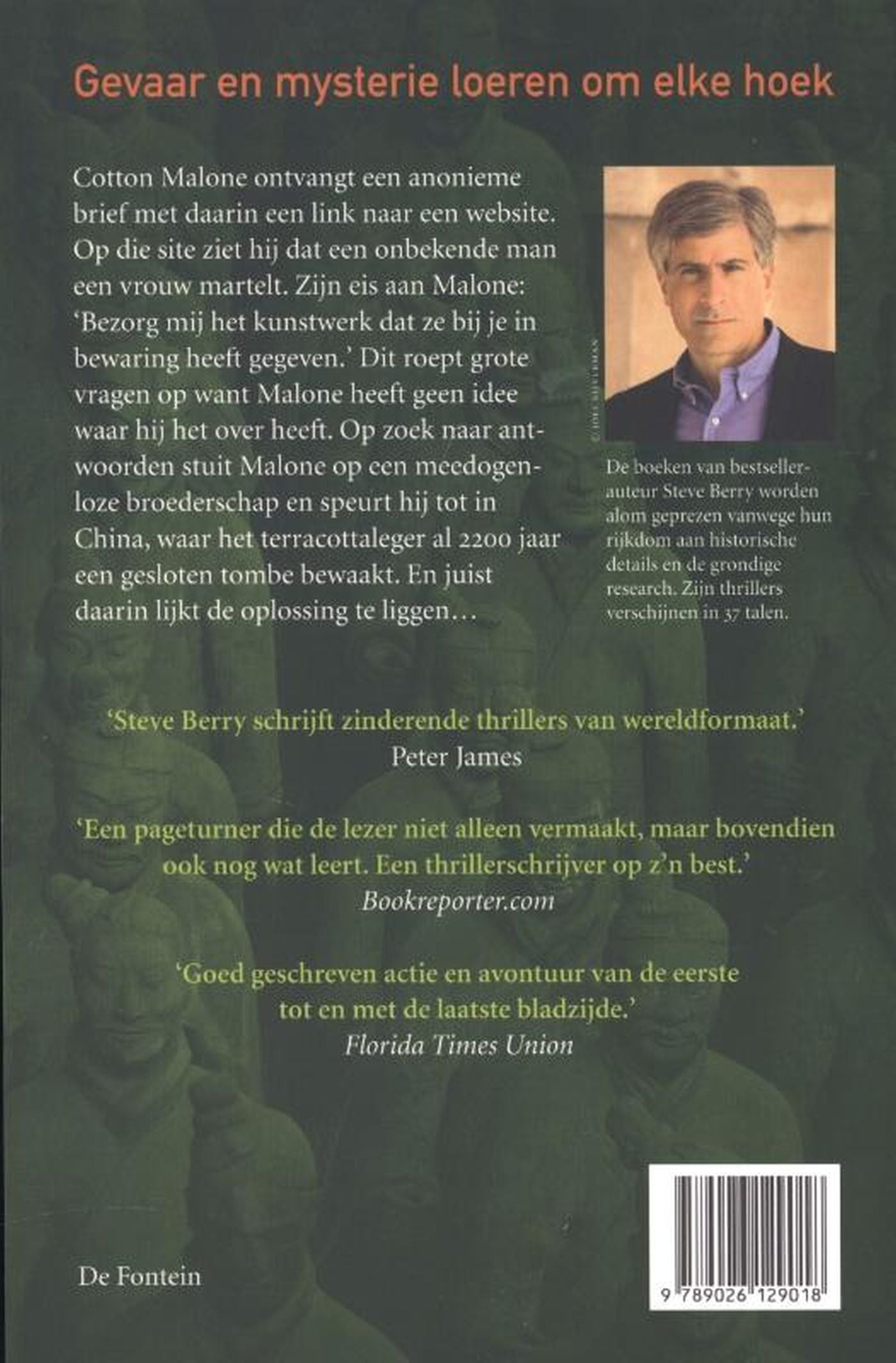 Op die site ziet hij dat een onbekende man een vrouw martelt. Zijn eis aan Malone: 'Bezorg mij het kunstwerk dat ze bij je in bewaring heeft gegeven.' Dit roept grote vragen op, want Malone heeft geen idee waar hij het over heeft. Op zoek naar antwoorden stuit Malone op een meedogenloze broederschap en speurt hij tot in China, waar het terracottaleger al 2200 jaar een gesloten tombe bewaakt. En juist daarin lijkt de oplossing te liggen.