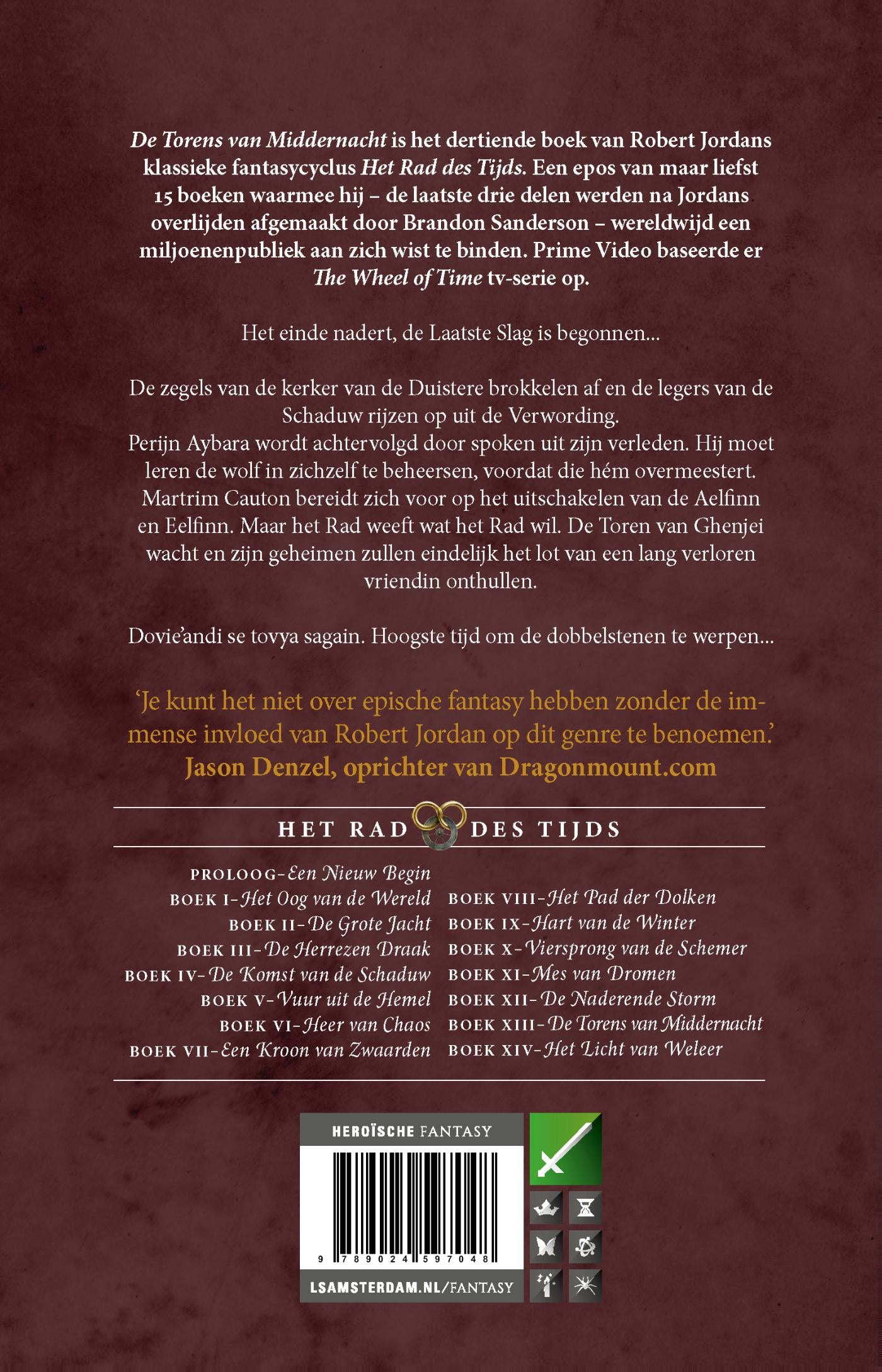De Torens van Middernacht is het dertiende boek van Robert Jordans klassieke fantasycyclus Het Rad des Tijds. Een epos van maar liefst 15 boeken waarmee hij – de laatste drie delen werden na Jordans overlijden afgemaakt door Brandon Sanderson – wereldwijd een miljoenenpubliek aan zich wist te binden. Prime Video baseerde er de tv-serie The Wheel of Time op.