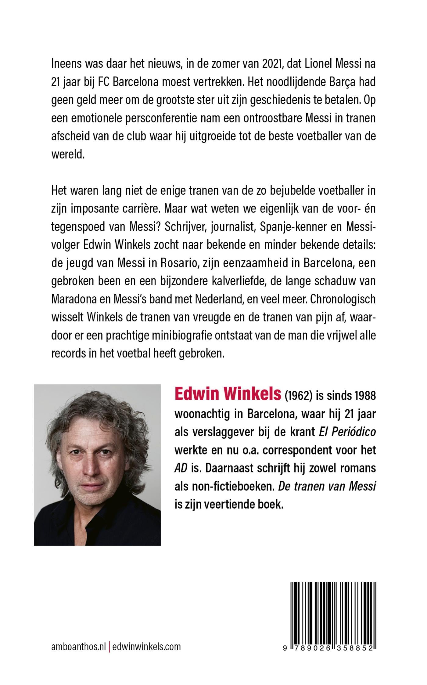 Schrijver, journalist, Spanje-kenner en Messi-volger Edwin Winkels zocht naar bekende en minder bekende details: de jeugd van Messi in Rosario, zijn eenzaamheid in Barcelona, een gebroken been en een bijzondere kalverliefde, de lange schaduw van Maradona en Messi’s band met Nederland, en veel meer. Chronologisch wisselt Winkels de tranen van vreugde en de tranen van pijn af, waardoor een prachtige minibiografie ontstaat van de man die vrijwel alle records in het voetbal heeft gebroken.