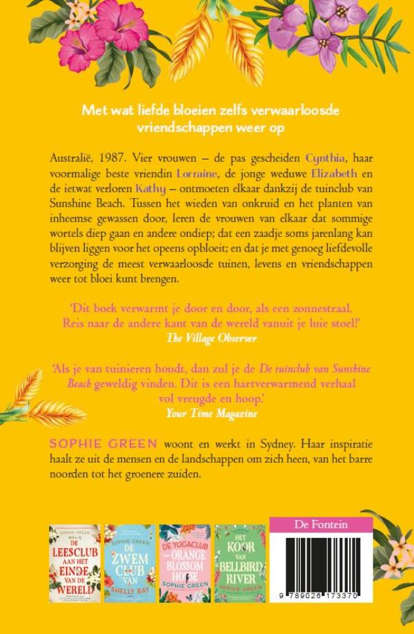 Lees ook Sophie Greens andere heerlijke romans over vrouwenvriendschappen in Australië: De leesclub aan het einde van de wereld, De zwemclub van Shelly Bay, De yogaclub van Orange Blossom House en Het koor van Bellbird River.