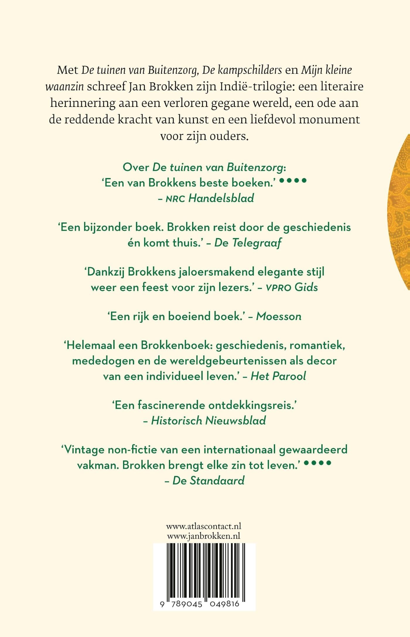 Brokken verweeft Olga’s verhaal op ingenieuze wijze met beschouwingen over muziek, literatuur, cultuur en geschiedenis, zoals over componist Leopold Godowsky die in de ban raakte van de gamelan en de moeder van Hella S. Haasse, die de bekendste concertpianist van Indië was. ‘De tuinen van Buitenzorg’ is een juweel van een boek, van een schrijver op de toppen van zijn kunnen.