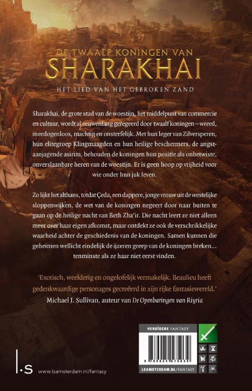 ‘Exotisch, weelderig en ongelofelijk vermakelijk. Beaulieu heeft gedenkwaardige personages gecreëerd in zijn rijke fantasiewereld.’ Michael J. Sullivan, auteur van De Openbaringen van Riyria