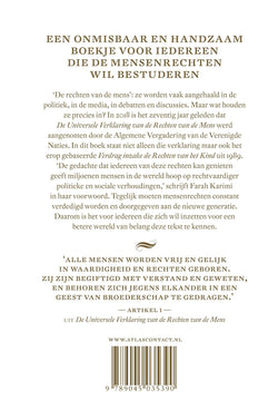 ‘De gedachte dat iedereen van deze rechten kan genieten geeft miljoenen mensen in de wereld hoop op rechtvaardiger politieke en sociale verhoudingen,’ schrijft Farah Karimi in haar voorwoord. Tegelijk moeten mensenrechten constant verdedigd worden en doorgegeven aan de nieuwe generatie. Daarom is het voor iedereen die zich wil inzetten voor een betere wereld van belang deze tekst te kennen.