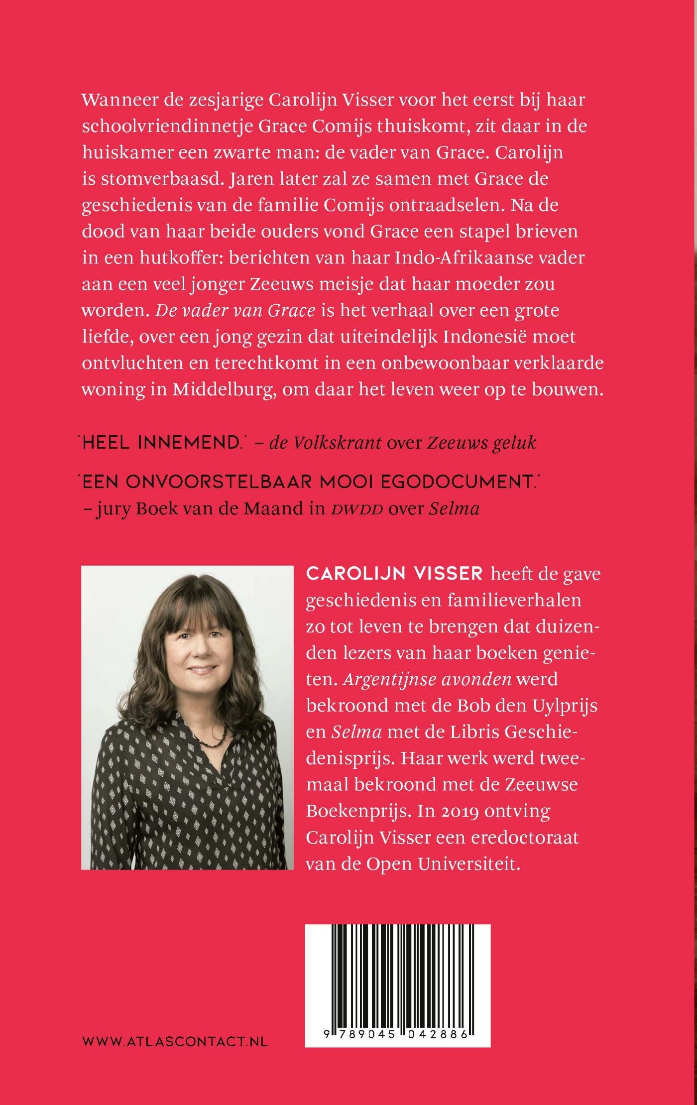 In ‘De vader van Grace’ ontvouwt Carolijn Visser het verhaal van de familie Comijs. Wanneer de zesjarige Carolijn voor het eerst bij haar schoolvriendinnetje Grace Comijs thuiskomt, zit daar in de huiskamer een zwarte man: de vader van Grace. Carolijn is stomverbaasd. Jaren later zal ze samen met Grace de geschiedenis van de familie Comijs ontraadselen. Na de dood van haar beide ouders vond Grace een stapel brieven in een hutkoffer: berichten van haar Indo-Afrikaanse vader aan een veel jonger Zeeuws meisje dat haar moeder zou worden. ‘De vader van Grace’ is het verhaal over een grote liefde, over een jong gezin dat uiteindelijk Indonesië moet ontvluchten en terechtkomt in een onbewoonbaar verklaarde woning in Middelburg, om daar het leven weer op te bouwen.