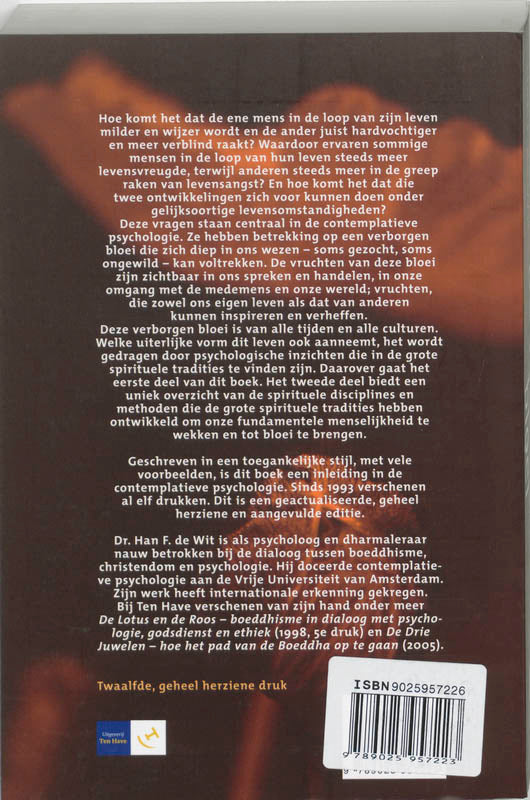 Hoe komt het dat de ene mens in de loop van zijn leven milder en wijzer wordt, en de ander juist hardvochtiger en meer verblind raakt? Wat maakt dat sommige mensen steeds meer levensvreugde ervaren en uitstralen, terwijl anderen in toenemende mate in de greep raken van levensangst? Deze vragen hebben betrekking op een verborgen bloei die zich diep in ons wezen kan voltrekken. De vruchten van deze bloei zijn zichtbaar in ons spreken en handelen, in onze omgang met de medemens en onze wereld, en kunnen onszelf én anderen inspireren en verheffen. De verborgen bloei wordt gecultiveerd in wat wel het contemplatieve leven wordt genoemd. Dat leven is van alle tijden en alle culturen. Welke uiterlijke vorm dit leven ook aanneemt, het wordt gedragen door psychologisch inzichten die in de grote spirituele tradities te vinden zijn. Daarover gaat het eerste deel van dit boek. Het tweede deel biedt een uniek, systematisch overzicht van de spirituele methoden die de grote spirituele tradities hebben ontwikkeld om onze fundamentele menselijkheid te wekken en tot bloei brengen. Geschreven in een speelse, toegankelijke stijl, met vele voorbeelden, is het boek een inleiding in de contemplatieve psychologie. Het werd ook vertaald in het Engels en Duits.