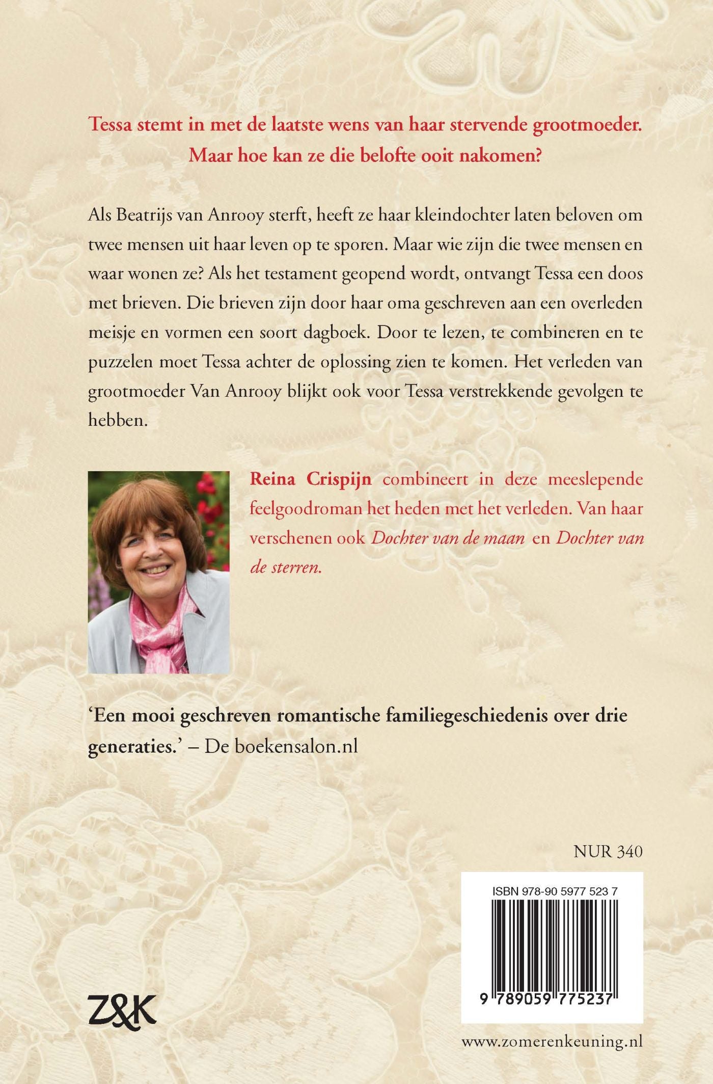 Vlak voordat Beatrijs van Anrooy overlijdt, doet ze haar kleindochter Tessa een vreemd verzoek: Tessa moet mensen opzoeken en hun vertellen dat Beatrijs altijd van hen gehouden heeft. Reina Crispijn combineert heden met verleden. Romantische thriller, fascinerend en meeslepend. Kort nadat haar grootmoeder haar wens heeft geuit, overlijdt ze en kan Tessa niet meer vragen wie de mensen zijn waar ze over sprak. Tessa staat voor een raadsel, totdat ze een bijzonder dagboek erft: brieven verstopt in een herbarium, een verzamelboek voor gedroogde bloemen en planten. Ze leest ze en komt zo achter het geheime leven van haar grootmoeder dat zich afspeelde voor en tijdens de oorlog. Tessa besluit op zoek te gaan. Het wordt een zoektocht met verstrekkende gevolgen.