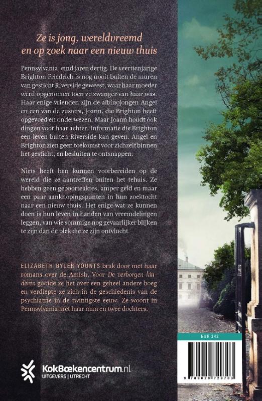 Elizabeth Byler Younts schetst in 'De verborgen kinderen' een aangrijpend beeld van de psychiatrie in Pennsylvania, 1937. De veertienjarige Brighton kent alleen het leven binnen de grauwe muren van gesticht Riverside. Hier wordt ze opgevoed en onderwezen door verpleegster Joann. Brighton weet niet dat Joann geheimen bewaart die een sleutel vormen tot haar verborgen verleden. Een verleden dat Brighton vasthoudt in het sombere Riverside.