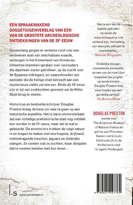 Al vijfhonderd jaar lang hebben ontdekkingsreizigers gezocht naar de ‘Verdwenen Stad’ diep in het regenwoud van Honduras. Douglas Preston zat aan boord van het vliegtuig waarmee een expeditie uiteindelijk het gebied van een onontgonnen vallei, omringd door ondoordringbaar oerwoud en bergen, in kaart bracht, met behulp van ruimtevaarttechniek. Ze vonden niet alleen een oude stad, maar ook een verdwenen beschaving.