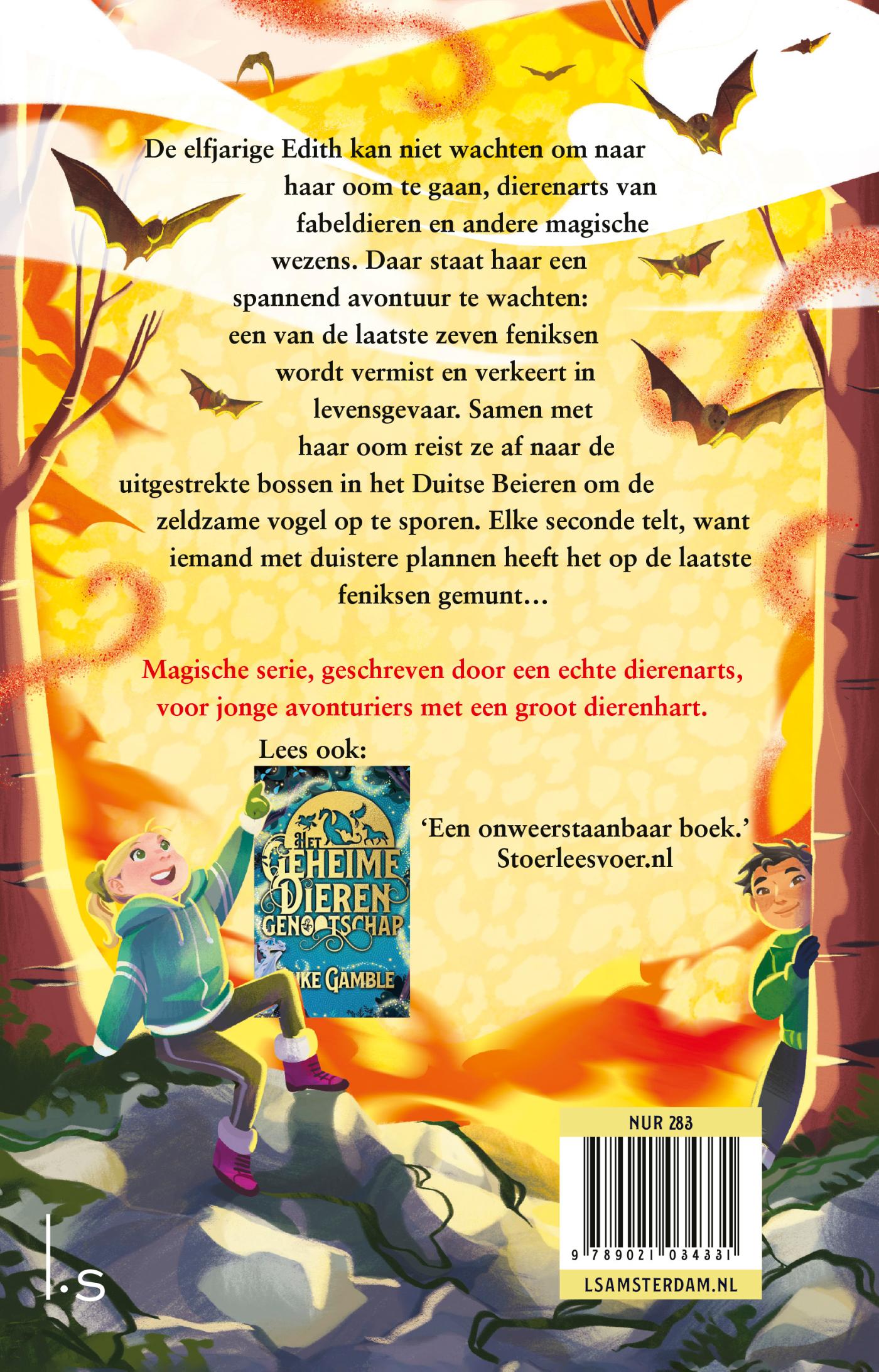 Edith kan niet wachten om naar haar oom te gaan, die dierenarts is van fabeldieren en andere magische wezens. Nadat zij en haar oom yeti’s hebben gered uit handen van aartsvijand Arabella Speerslag, belandt ze opnieuw in een spannend avontuur. Een van de laatste zes levende feniksen wordt vermist en verkeert in levensgevaar. Het geheime dierengenootschap gaat op pad om de feniks op te sporen. Onderweg lopen ze algauw een nieuwe vijand tegen het lijf. Met de as van de feniks maakt hij magische beesten die hij doorverkoopt. Het geheime dierengenootschap moet snel ingrijpen voordat de feniks uitsterft…