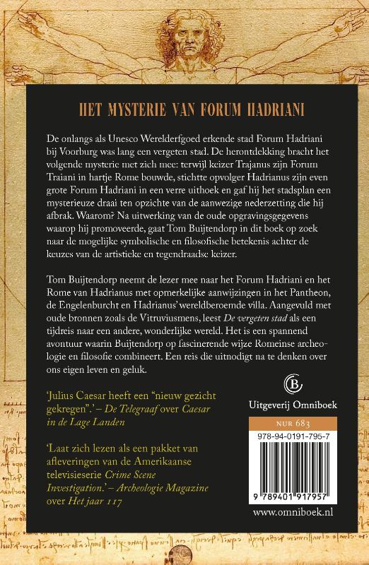 Forum Hadriani (het huidige Voorburg, genoemd naar keizer Hadrianus) lag aan de noordgrens van het Romeinse Rijk. Het was met Nijmegen de enige nederzetting in Nederland die Romeinse stadsrechten kreeg. In 2021 werd de Nederlandse limes, waar Forum deel van uitmaakt, uitgeroepen tot Unesco Werelderfgoed. Tom Buijtendorp promoveerde op de vergeten stad Forum Hadriani, waar door het grondwater etensresten, schoenen, wagenwielen en wijnvaten bewaard bleven. Uit de klei doemt het nieuwe mysterie op waarom keizer Hadrianus hier zijn eerste stad gesticht zou hebben, met een raadselachtig ontwerp. Het biedt een nieuw perspectief op het inspirerende verleden van Forum Hadriani.