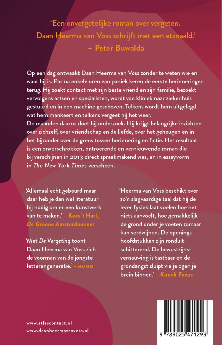‘De Vergeting’ van Daan Heerma van Voss is een onverschrokken, ontroerende en vernieuwende roman die bij verschijnen in 2013 direct spraakmakend was, en in essayvorm in ‘The New York Times’ verscheen.