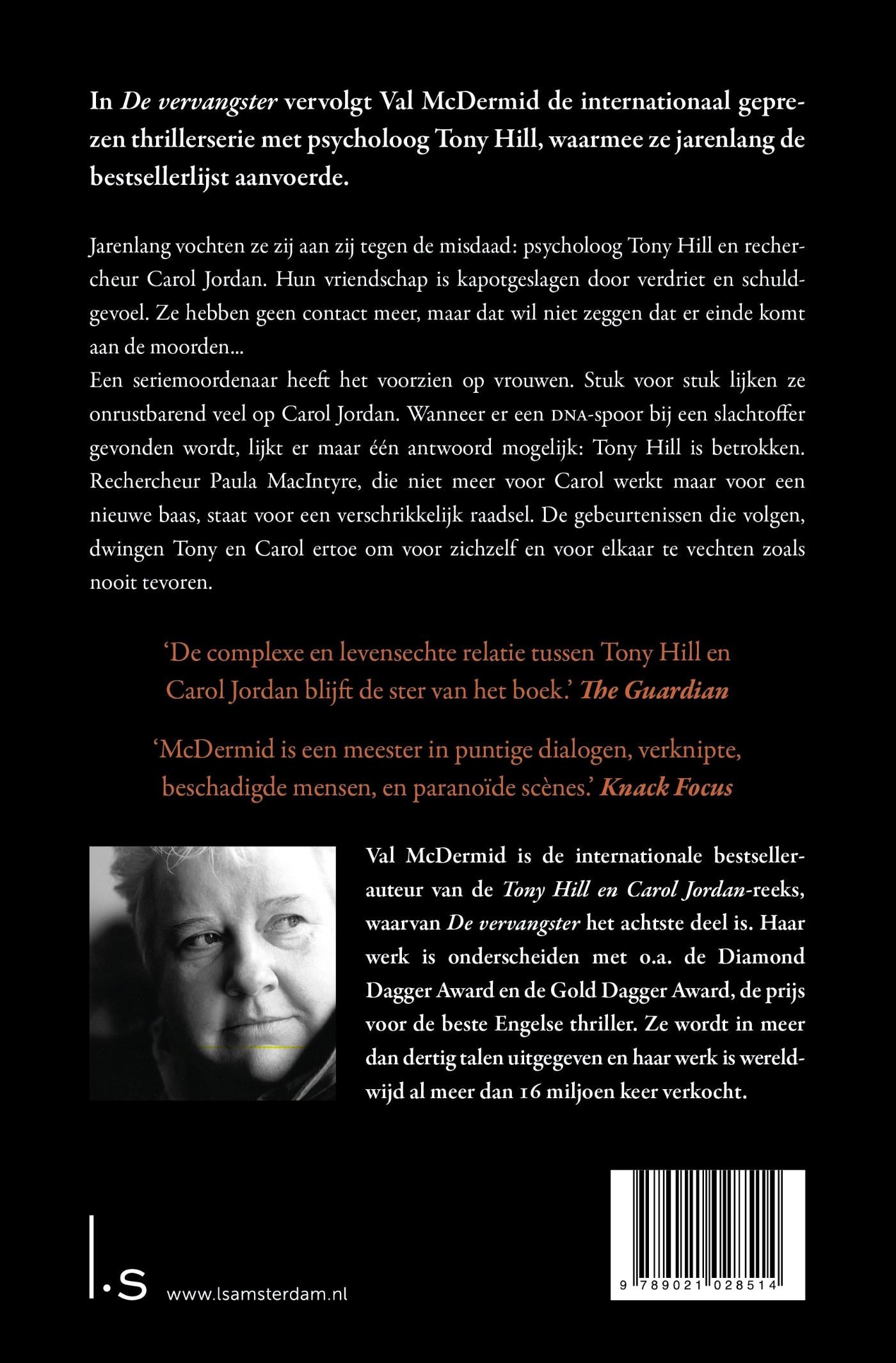(POD)In De vervangster, het achtste deel van Val McDermids Tony Hill en Carol Jordan-reeks, hebben verdriet en schuldgevoel profielschetser Tony Hill en inspecteur Carol Jordan uit elkaar gedreven. Maar dat wil niet zeggen dat er einde komt aan de moorden.
