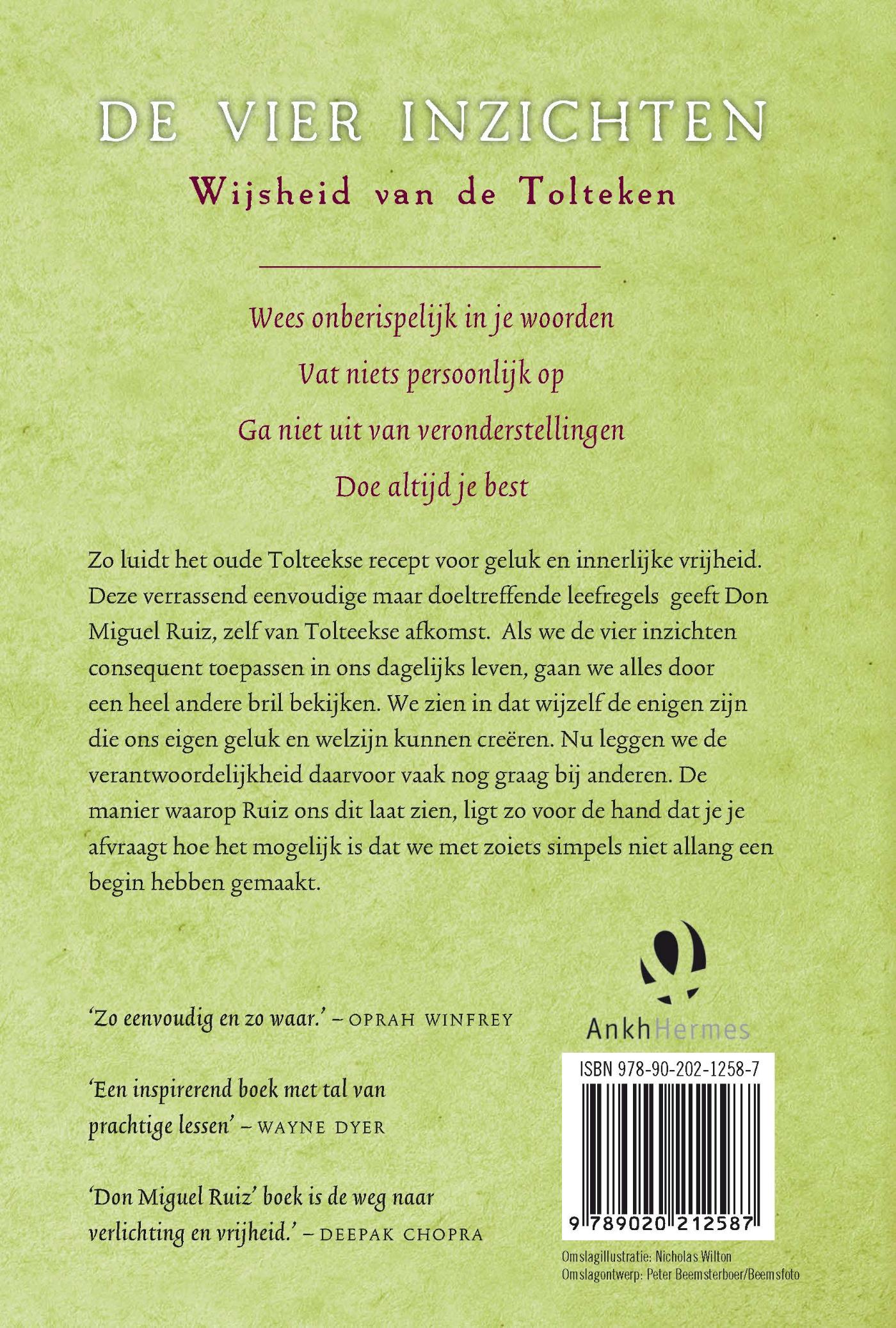 Zo luidt het Tolteekse recept om een gelukkig en vrij mens te worden. Deze verrassend eenvoudige, maar doeltreffende leefregels, gebaseerd op de oude Tolteekse wijsheid geeft Don Miguel Ruiz, de auteur van dit boek en zelf van Tolteekse afkomst.