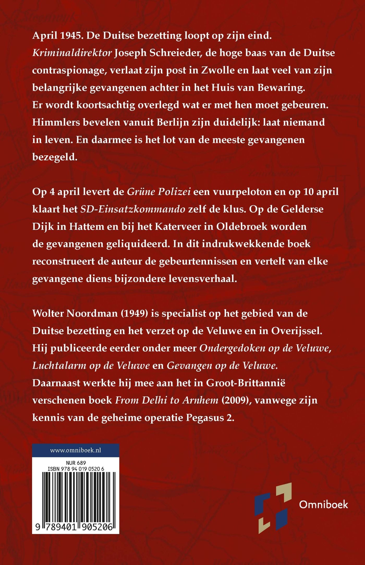 Het lot van de meeste slachtoffers is al bezegeld als SS'er Joseph Schreieder, gespecialiseerd in het oprollen van verzetsgroepen in Zwolle, op 3 april zijn post als politiefunctionaris verlaat en veel van zijn gevangenen achterlaat. In het huis van bewaring wordt koortsachtig overlegd wat er met de gevangenen moet gebeuren. Himmlers bevelen uit Berlijn zijn duidelijk: laat geen enkele getuige in leven. Op 4 april levert de Grüne Polizei een vuurpeloton - een represaillemaatregel voor de sabotage aan de spoorlijn - en op 10 april klaart het SD-Einsatzcommando zelf de klus. Op de Gelderse Dijk in Hattem en bij het Katerveer in Oldebroek worden de gevangenen geliquideerd. Maar één terechtgestelde laat zich bij het bevel 'vuur' in de IJssel vallen en wordt voor dood achtergelaten...