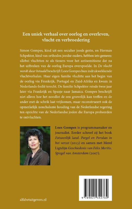 Simon Gompes, kind uit een seculier joods gezin, en Herman Schpektor, kind van orthodox joodse ouders, hebben iets gemeen: allebei vluchtten ze als tieners voor het antisemitisme dat na het uitbreken van de oorlog Europa overspoelde. In 'De vlucht wordt duur betaald' beschrijft Loes Gompes hun indrukwekkende vluchtverhalen. Haar eigen familie vluchtte aan het begin van de oorlog via Frankrijk, Portugal en Zuid-Afrika en kwam in Nederlands-Indië