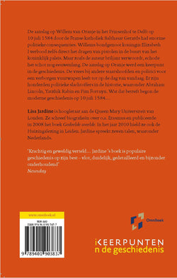 Op 10 juli 1584 werd Willem van Oranje vermoord door Balthasar Gerards. De Prins van Oranje was de eerste politicus ooit die met een vuurwapen om het leven werd gebracht. ‘Je zou, met pijn in het hart, kunnen zeggen dat de moderne geschiedenis begon in 1584,’ schrijft de Britse Observer naar aanleiding van 'De vreselijke dood van Willem de Zwijger'. De Vader des Vaderlands werd 10 juli dat jaar het eerste politieke slachtoffer van een moordaanslag met een vuurwapen. Abraham Lincoln, Martin Luther King en Pim Fortuyn zouden volgen. Hoogleraar Lisa Jardine, die zeven talen spreekt waaronder Nederlands, vertelt niet alleen het verhaal van dood van Willem van Oranje, maar plaatst dat bovendien in een bredere nationale en internationale context. Jardine heeft een aantal bestsellers geschreven, waaronder het in het Nederlands verschenen boek 'Gedeelde weelde'.