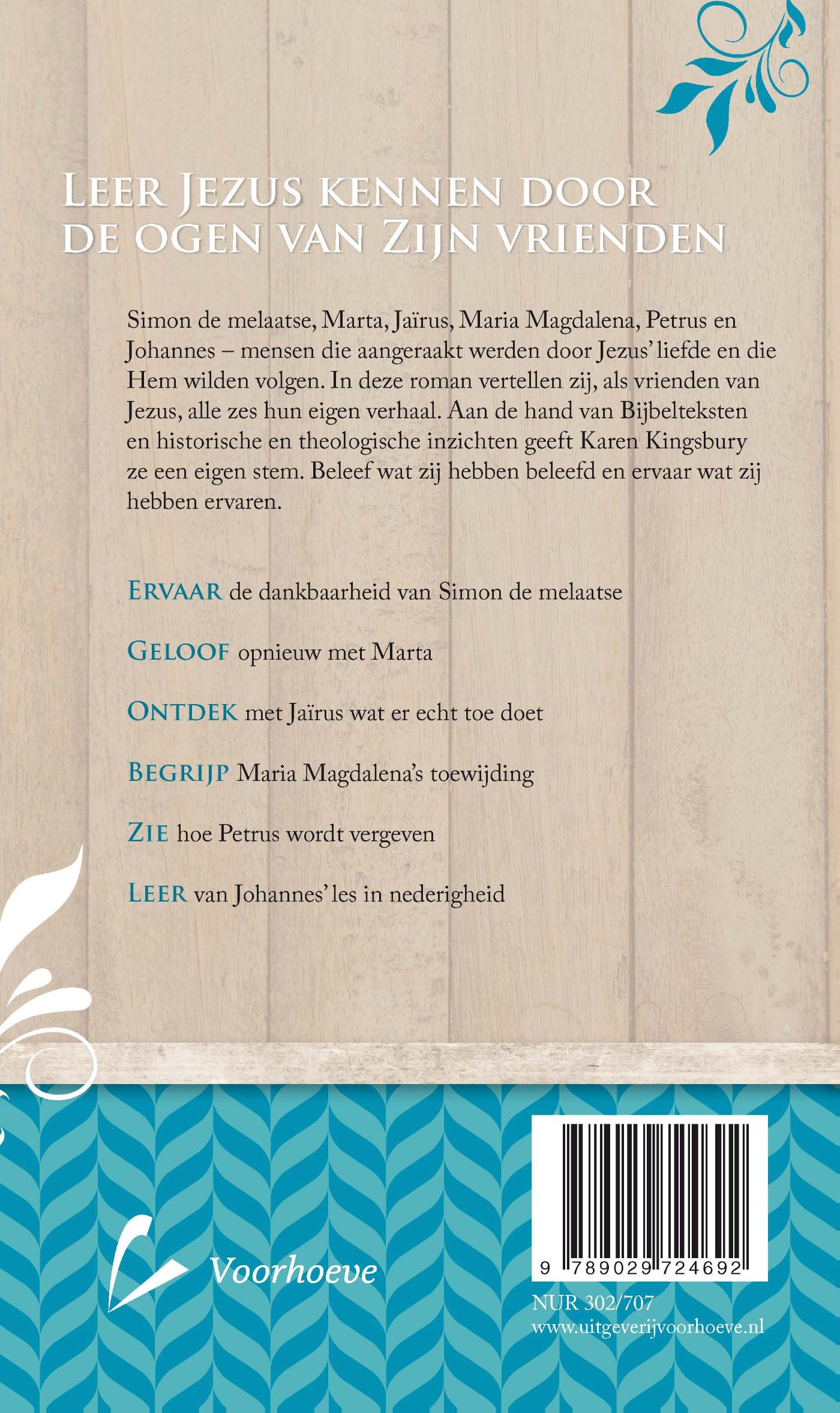 In deze Bijbels-historische roman van Karen Kingsbury komen de vrienden van Jezus aan het woord: Simon, Marta, Jaïrus, Maria Magdalena, Petrus en Johannes – mensen die aangeraakt werden door Jezus’ liefde en die Hem wilden volgen. Aan de hand van Bijbelteksten en historische en theologische inzichten laat Karen Kingsbury ze hun verhaal vertellen. Zoals de geschiedenis van Petrus, de discipel die Hem verraadde. Of het verhaal van Jaïrus, wiens dochtertje uit de dood werd opgewekt.