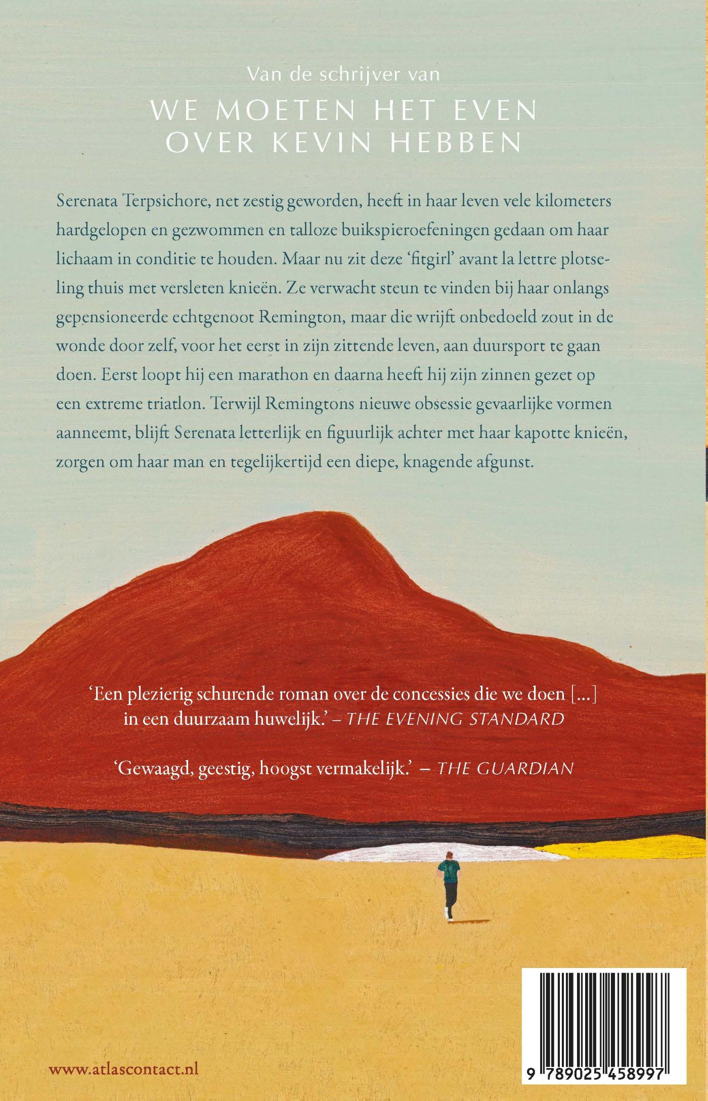 Serenata Terpsichore, hoofdpersoon van Li Shriver’s nieuwste roman ‘De weg van de meeste weerstand’, is net zestig geworden, heeft in haar leven vele kilometers hardgelopen en gezwommen en talloze buikspieroefeningen gedaan om haar lichaam in conditie te houden. Maar nu zit deze ‘fitgirl’ avant la lettre plotseling thuis met versleten knieën. Ze verwacht steun te vinden bij haar onlangs gepensioneerde echtgenoot Remington, maar die wrijft onbedoeld zout in de wonde door zelf, voor het eerst in zijn zittende leven, aan duursport te gaan doen. Eerst loopt hij een marathon en daarna heeft hij zijn zinnen gezet op een extreme triatlon. Terwijl Remingtons nieuwe obsessie gevaarlijke vormen aanneemt, blijft Serenata letterlijk en figuurlijk achter met haar kapotte knieën, zorgen om haar man en tegelijkertijd een diepe, knagende afgunst.