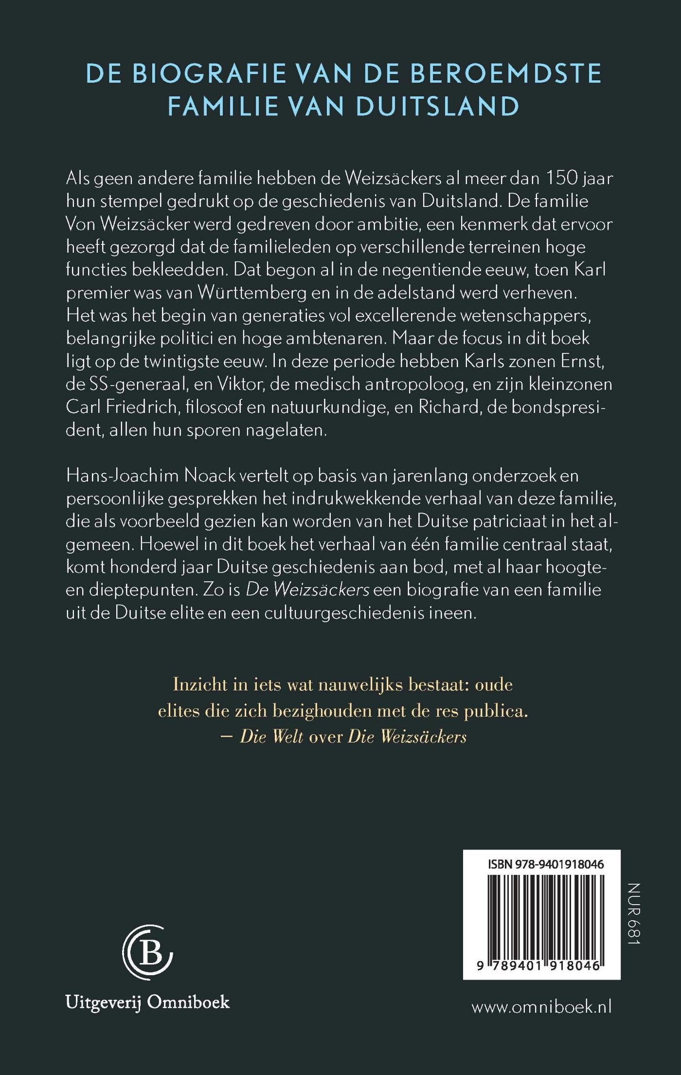 In de grote familie Von Weiszäcker, die gekenmerkt werd door ambitie, lag de lat altijd hoog. Noack gaat in op Karls zonen Ernst, de SS-generaal, en zijn broer Viktor, de medisch antropoloog, en op zijn kleinzonen: filosoof en natuurkundige Carl Friedrich en natuurlijk Richard, de bondspresident. Dit boek vertelt het ongelofelijke verhaal van de Von Weizsäckers. Het presenteert een rijk geïllustreerde cultuurgeschiedenis van Duitsland door de ogen van een toonaangevende familie.