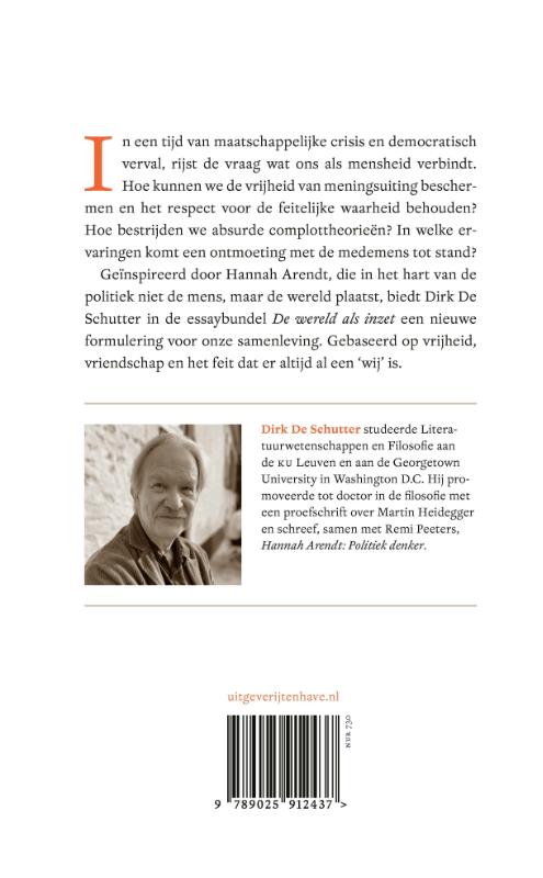 "Met 'De wereld als inzet' toont De Schutter vlijmscherp en helder aan dat de ideeën van Arendt relevanter zijn dan ooit en biedt hij ons een nieuwe formulering voor onze samenleving. Gestoeld op vrijheid, vriendschap en het feit dat er altijd al een “wij” is. En dat komt niet ongelegen in de hedendaagse wereld waarin de oorlog in Oekraïne en de crisis in het Midden-Oosten allebei manifestaties zijn van dezelfde kolossale geopolitieke strijd tussen autocratie aan de ene kant, en inclusie en pluralisme aan de andere kant…" – Humanistisch Verbond