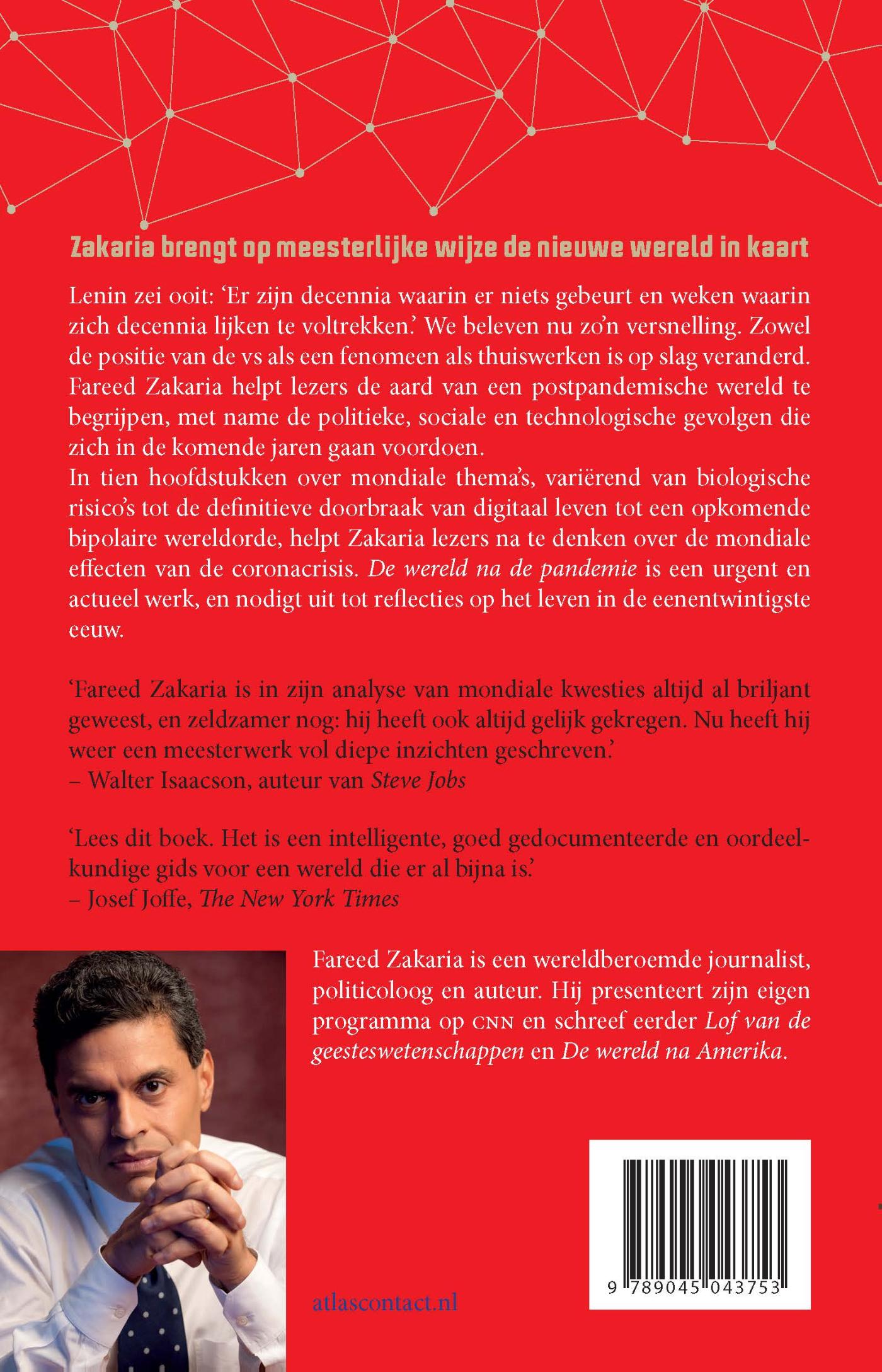 ‘De wereld na de pandemie’ is Fareed Zakaria’s nieuwste boek. Lenin zei ooit: ‘Er zijn decennia waarin er niets gebeurt en weken waarin zich decennia lijken te voltrekken.’ We beleven nu zo’n versnelling. Zowel de positie van de VS als een fenomeen als thuiswerken is op slag veranderd. Zakaria helpt lezers de aard van een postpandemische wereld te begrijpen, met name de politieke, sociale en technologische gevolgen die zich in de komende jaren gaan voordoen.