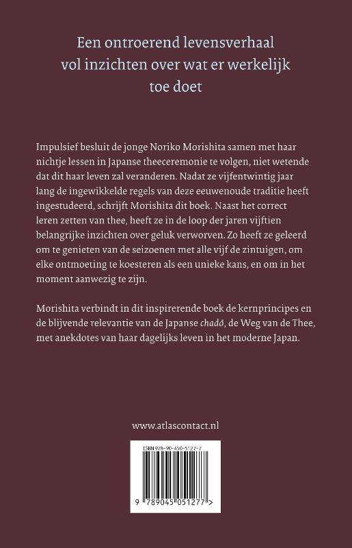 Impulsief besluit de jonge Noriko Morishita samen met haar nichtje lessen in Japanse theeceremonie te volgen, niet wetende dat dit haar leven zal veranderen. Nadat ze vijfentwintig jaar lang de ingewikkelde regels van deze eeuwenoude traditie heeft ingestudeerd, schrijft Morishita dit boek. Naast het correct leren zetten van thee, heeft ze in de loop der jaren vijftien belangrijke inzichten over geluk verworven. Zo heeft ze geleerd om te genieten van de seizoenen met alle vijf de zintuigen, om elke ontmoeting te koesteren als een unieke kans, en om in het moment aanwezig te zijn.