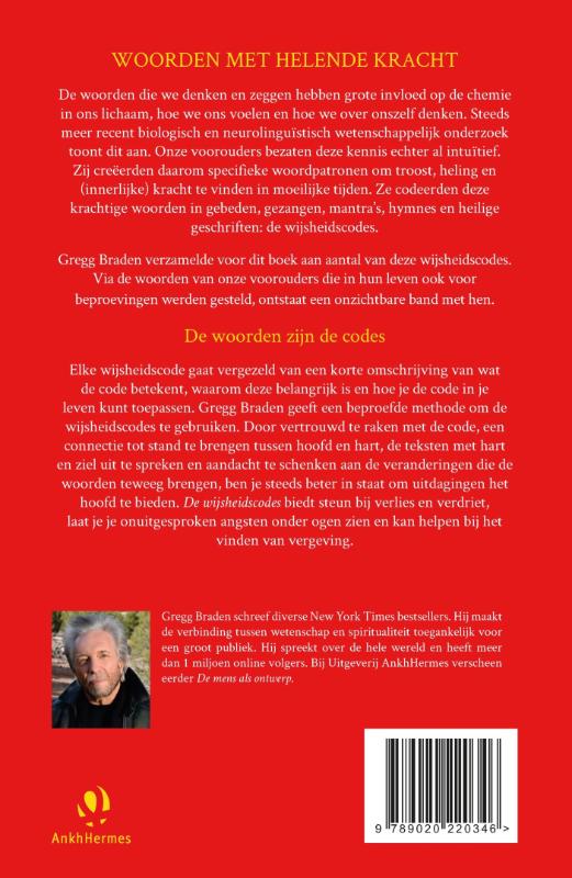 Elke wijsheidscode gaat vergezeld van een korte omschrijving van wat de code betekent, waarom deze belangrijk is en hoe je de code in je leven kunt toepassen. Gregg Braden geeft een beproefde methode om de wijsheidscodes te gebruiken. Door vertrouwd te raken met de code, een connectie tot stand te brengen tussen hoofd en hart, de teksten met hart en ziel uit te spreken en aandacht te schenken aan de veranderingen die de woorden teweeg brengen, ben je steeds beter in staat om uitdagingen in moeilijke tijden het hoofd te bieden. De wijsheidscodes biedt steun bij verlies en verdriet, laat je je onuitgesproken angsten onder ogen zien en het kan helpen bij het vinden van vergeving.