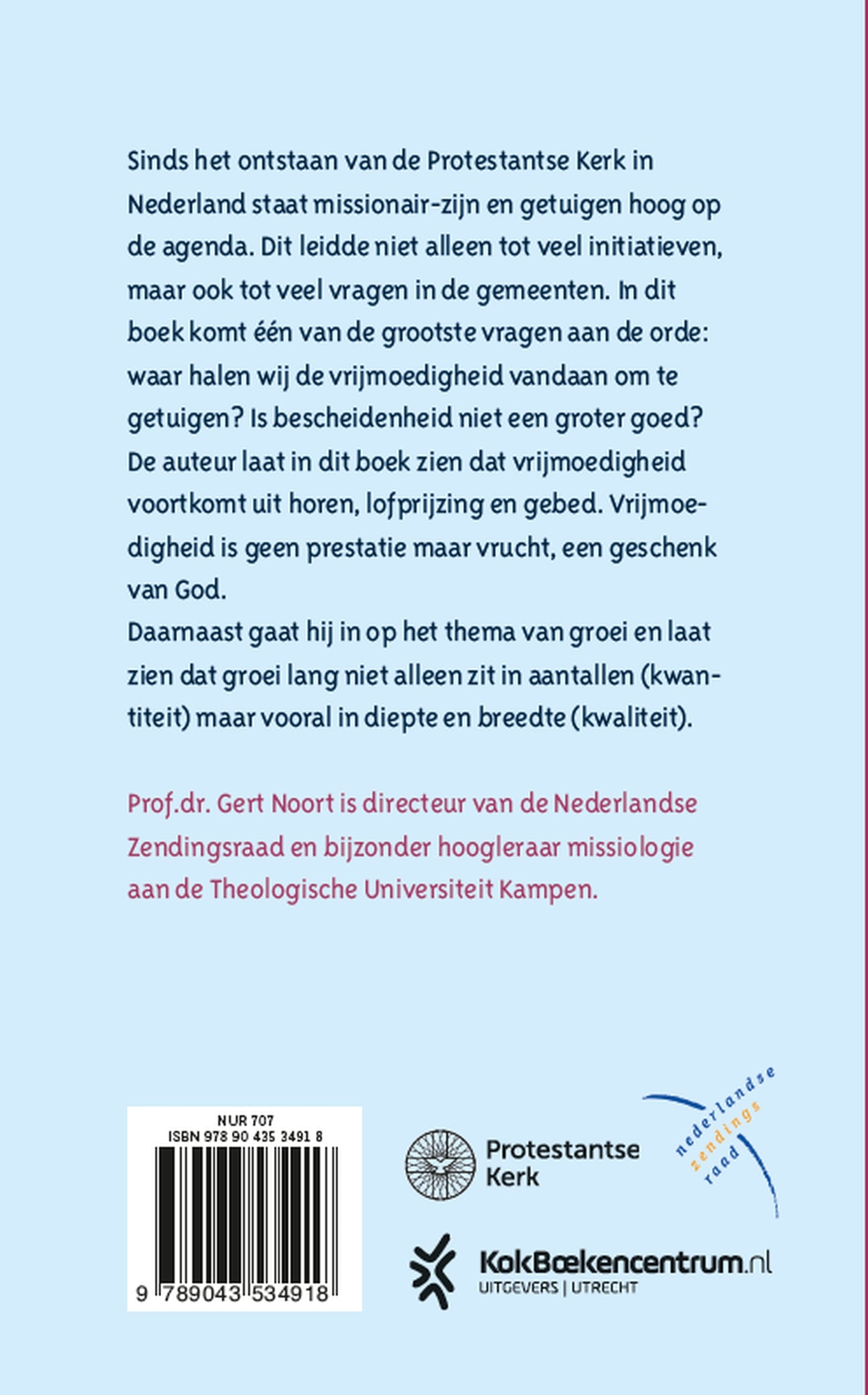 Sinds het ontstaan van de Protestantse Kerk in Nederland staat missionair-zijn en getuigen hoog op de agenda. Dit leidde niet alleen tot veel initiatieven, maar ook tot veel vragen in de gemeenten. In dit boek komt één van de grootste vragen aan de orde: waar halen wij de vrijmoedigheid vandaan om te getuigen? Is bescheidenheid niet een groter goed?
