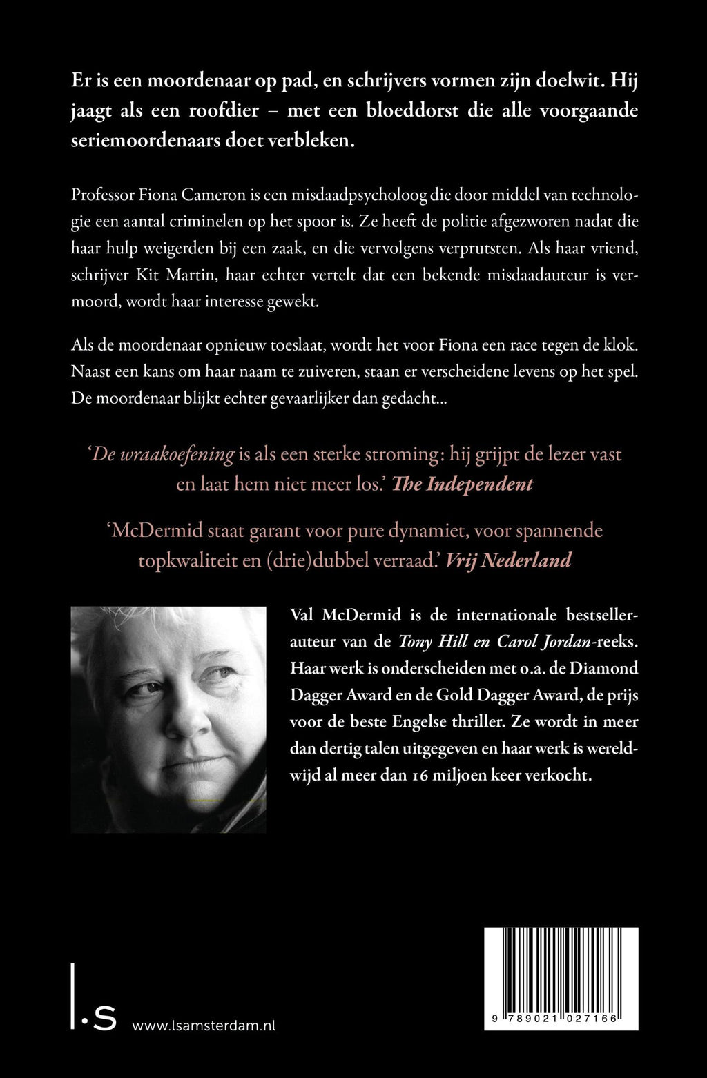 In De wraakoefening van bestsellerauteur Val McDermid is er een moordenaar op pad, en schrijvers vormen zijn doelwit. Hij jaagt als een roofdier – met een bloeddorst die alle voorgaande seriemoordenaars doet verbleken…