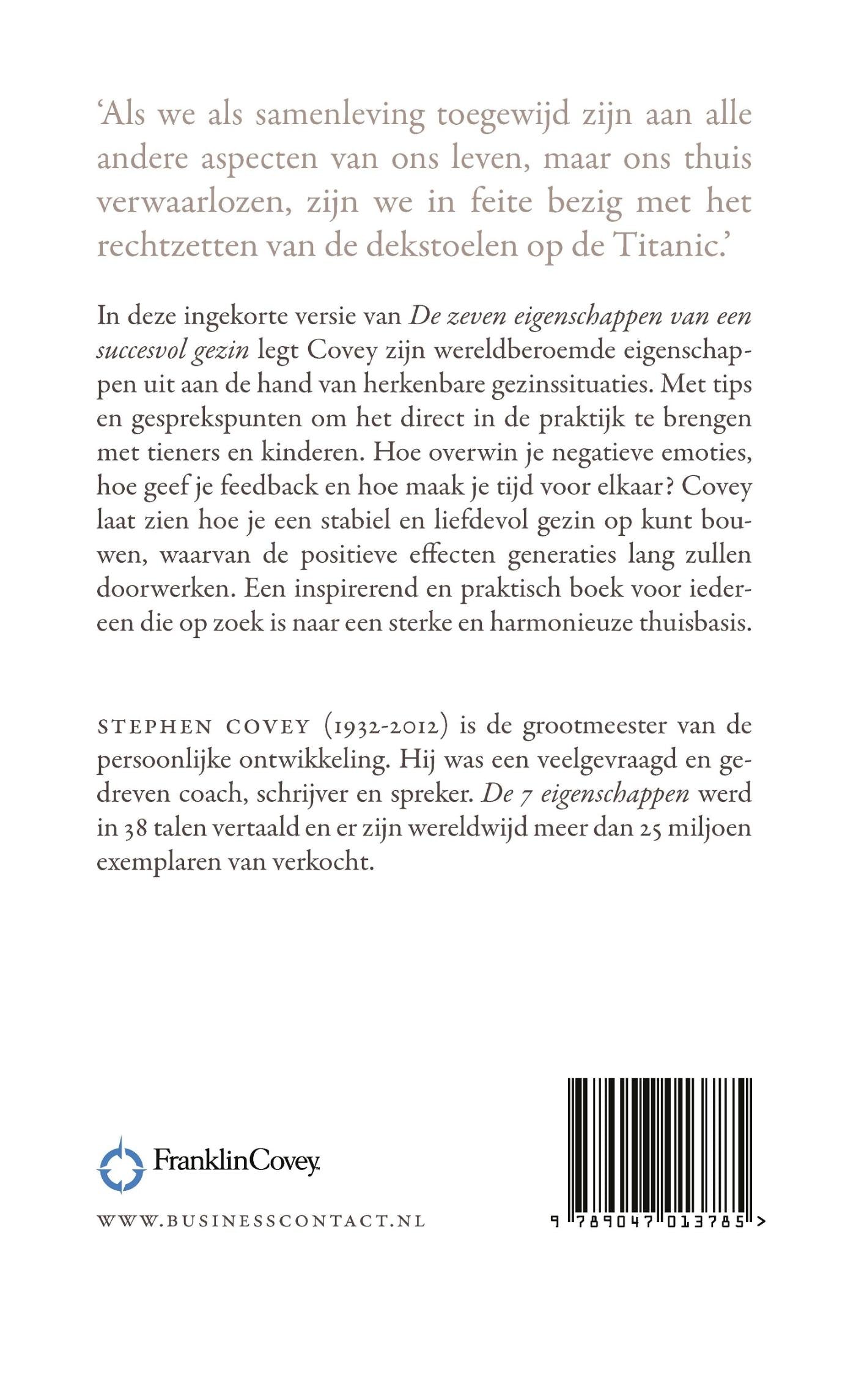 In deze ingekorte versie van ‘De zeven eigenschappen van een succesvol gezin’ legt Stephen Covey zijn wereldberoemde eigenschappen uit aan de hand van herkenbare gezinssituaties. Met tips en gesprekspunten om het direct in de praktijk te brengen met tieners en kinderen.