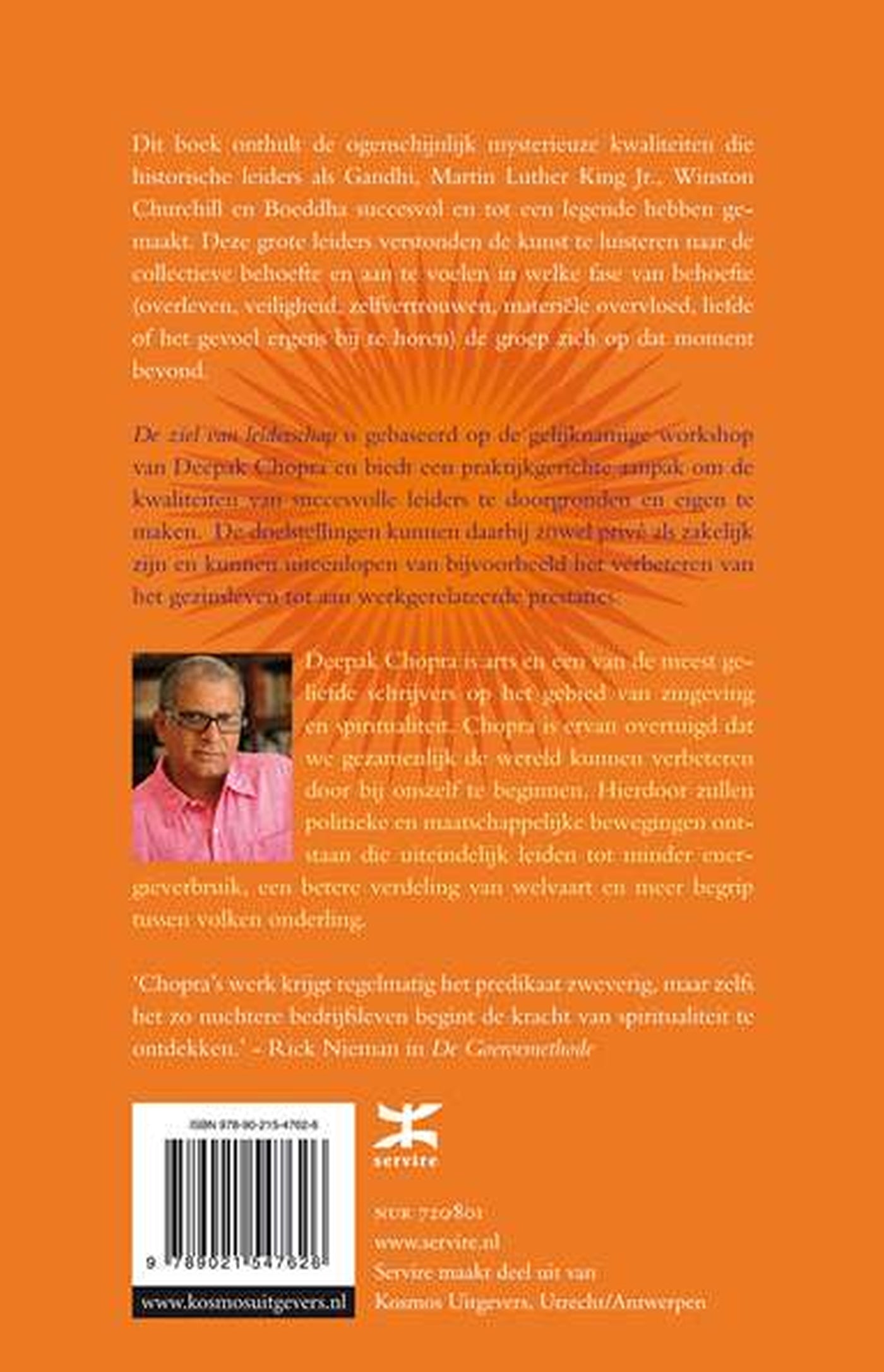 Dit boek onthult de ogenschijnlijk mysterieuze kwaliteiten die historische leiders succesvol en tot legende heeft gemaakt. Denk daarbij aan leiders als Gandhi, Martin Luther King Jr., Winston Churchill en Boeddha. Het boek is gebaseerd op de gelijknamige workshop van Deepak Chopra en biedt een praktijkgerichte aanpak om de kwaliteiten van succesvolle leiders te begrijpen en eigen te maken. De doelstellingen kunnen zowel privé als zakelijk zijn, van het verbeteren van het gezinsleven tot aan werkgerelateerde relaties en prestaties.