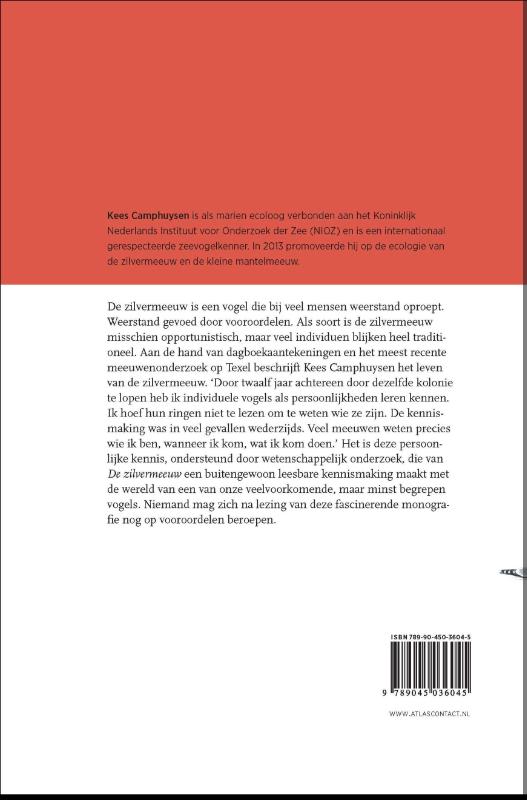 In De zilvermeeuw vertelt Kees Camphuysen over een vogel die bij veel mensen weerstand oproept. Weerstand gevoed door vooroordelen. Als soort is de zilvermeeuw misschien opportunistisch, maar veel individuen blijken heel traditioneel. Aan de hand van dagboekaantekeningen en het meest recente meeuwenonderzoek op Texel beschrijft Camphuysen het leven van de zilvermeeuw. ‘Door twaalf jaar achtereen door dezelfde kolonie te lopen heb ik individuele vogels als persoonlijkheden leren kennen. Ik hoef hun ringen niet te lezen om te weten wie ze zijn. De kennismaking was in veel gevallen wederzijds. Veel meeuwen weten precies wie ik ben, wanneer ik kom, wat ik kom doen.’ Het is deze persoonlijke kennis, ondersteund door wetenschappelijk onderzoek, die van De zilvermeeuw een buitengewoon leesbare kennismaking maakt met de wereld van een van onze veelvoorkomende, maar minst begrepen vogels. Niemand mag zich na lezing van deze fascinerende monografie nog op vooroordelen beroepen.