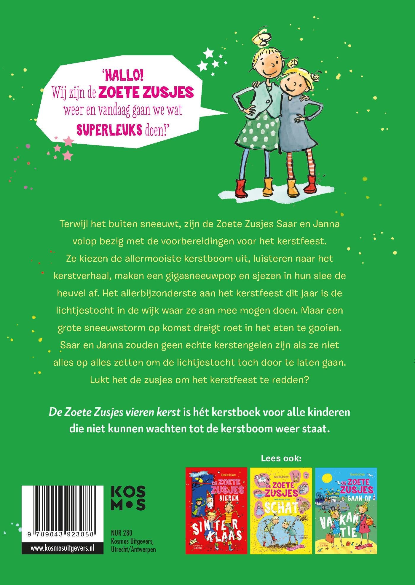 ‘De Zoete Zusjes vieren Kerstmis’ is hét kerstboek voor alle kinderen die niet kunnen wachten tot de kerstman en zijn rendieren in Nederland aangekomen zijn. Natuurlijk helpen de Zoete Zusjes mee met het versieren van de kerstboom, vieren ze kerst op school, gaan ze naar de kerstmarkt en spelen ze het kerstverhaal na. En dit jaar gaan ze kerst vieren op een wel heel bij zondere manier: ze mogen namelijk meedoen met de lichtjestocht en de levende kerststal in de wijk. Maar er komt een grote sneeuwstorm aan! Zal het Saar en Janna lukken om het kerstfeest te redden? Met het nieuwste deel in de populaire kinderboekenserie van de Zoete Zusjes wordt het weer lekker lezen op de bank met een dekentje, een beker warme chocolademelk en een zelfgebakken kerstkransje!