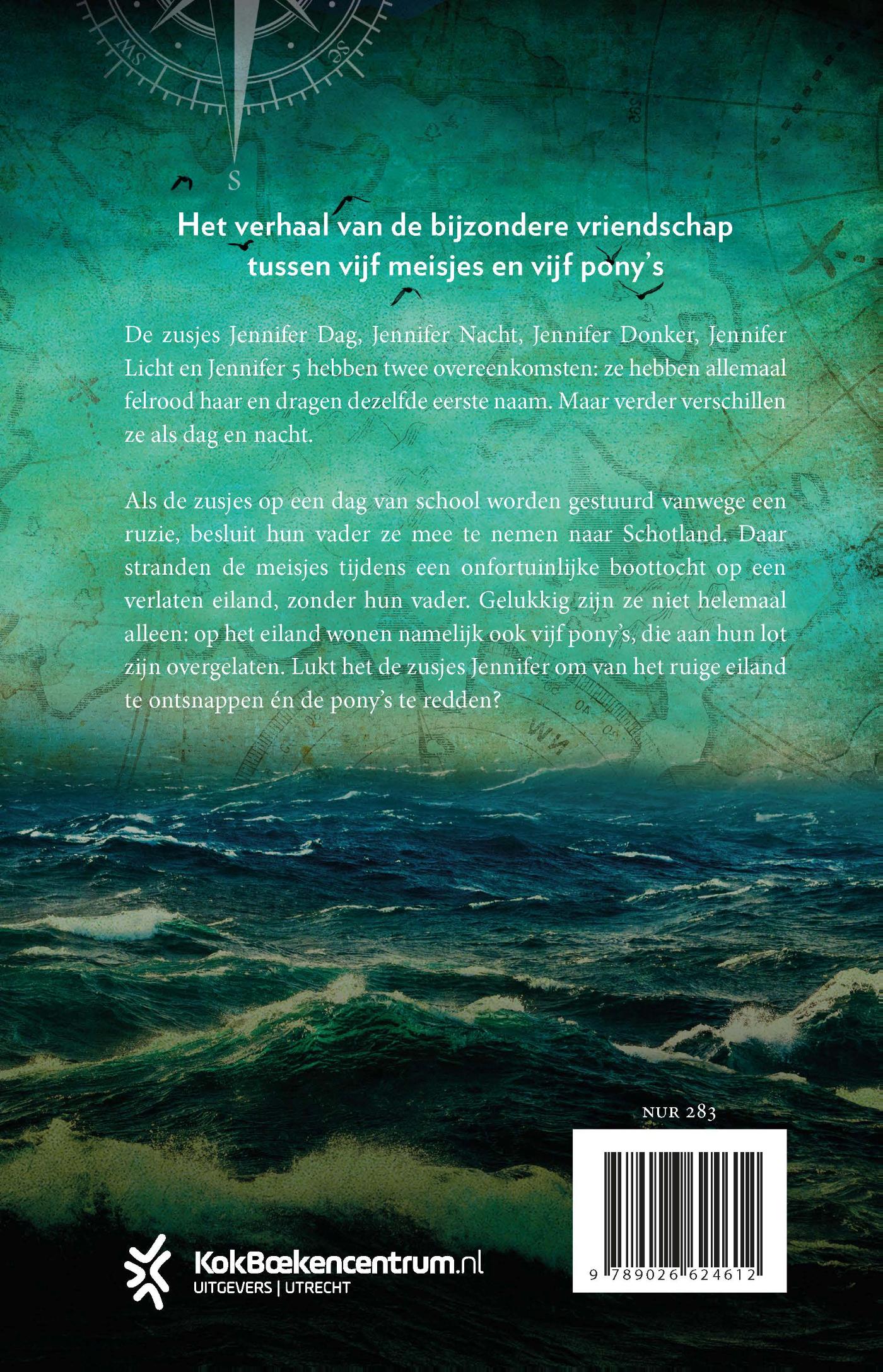‘De zusjes Jennifer’ van Nick Garlick is een mooi en hartverwarmend jeugdverhaal over vijf zusjes genaamd Jennifer: Jennifer Dag en Nacht, Jennifer Donker en Licht en Jennifer 5. Ze hebben allemaal felrood haar, maar dat is dan ook het enige waarin ze op elkaar lijken. Als ze op een dag van school worden gestuurd vanwege een ruzie, besluit hun vader ze mee te nemen naar Schotland. Daar stranden de meisjes tijdens een onfortuinlijke boottocht op een verlaten eiland, zonder hun vader. Gelukkig zijn ze niet helemaal alleen: op het eiland wonen namelijk ook vijf pony’s. De meisjes sluiten vriendschap met de dieren en bedenken een gewaagd plan om van het eiland te ontsnappen… Een hartverwarmend verhaal over moed, samenwerking, familie en pony’s.