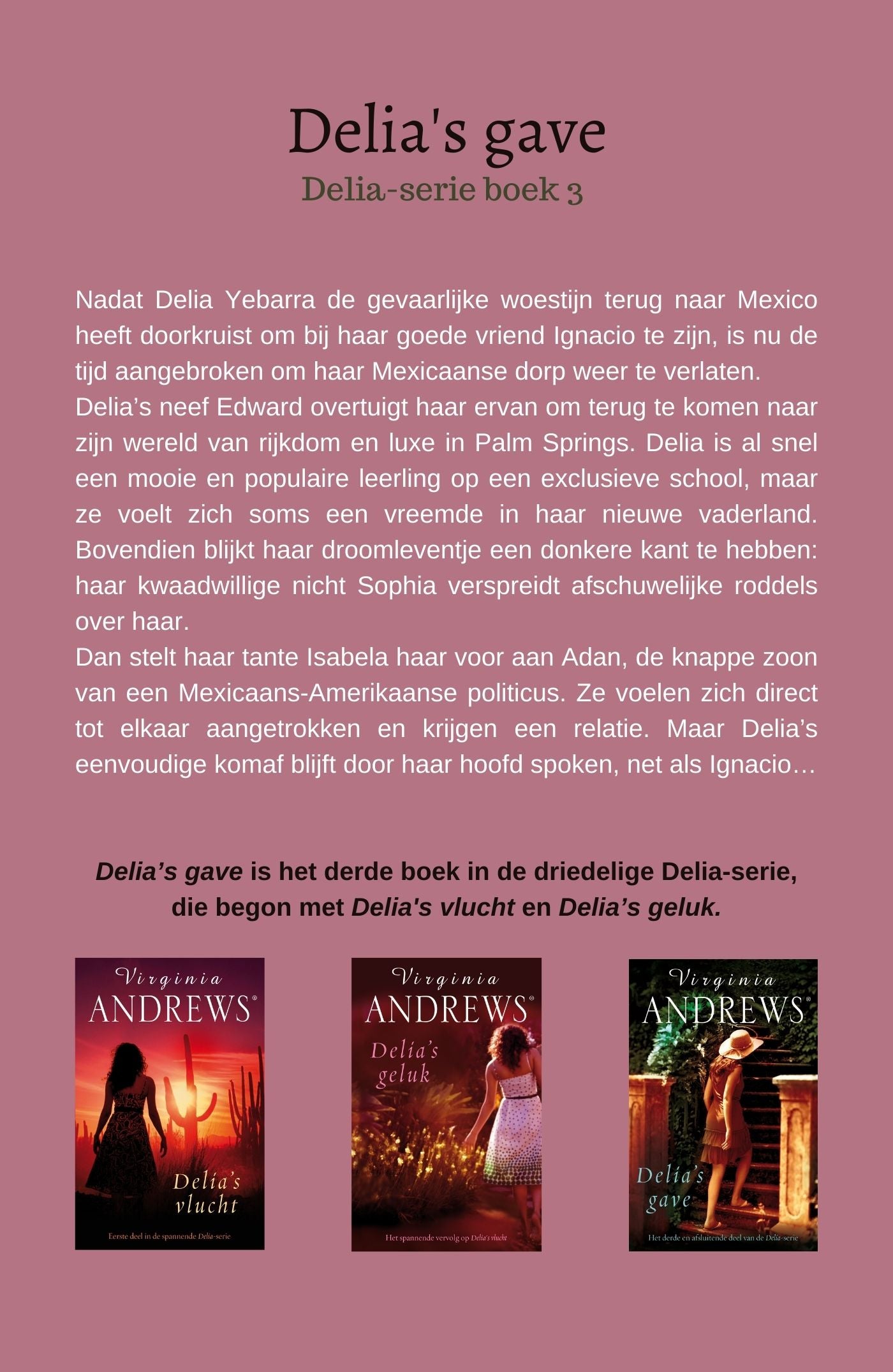 ‘Delia’s gave’ is het derde en laatste deel van de Delia-serie. Dit boek wordt voorafgegaan door ‘Delia’s vlucht’ en ‘Delia’s geluk’.