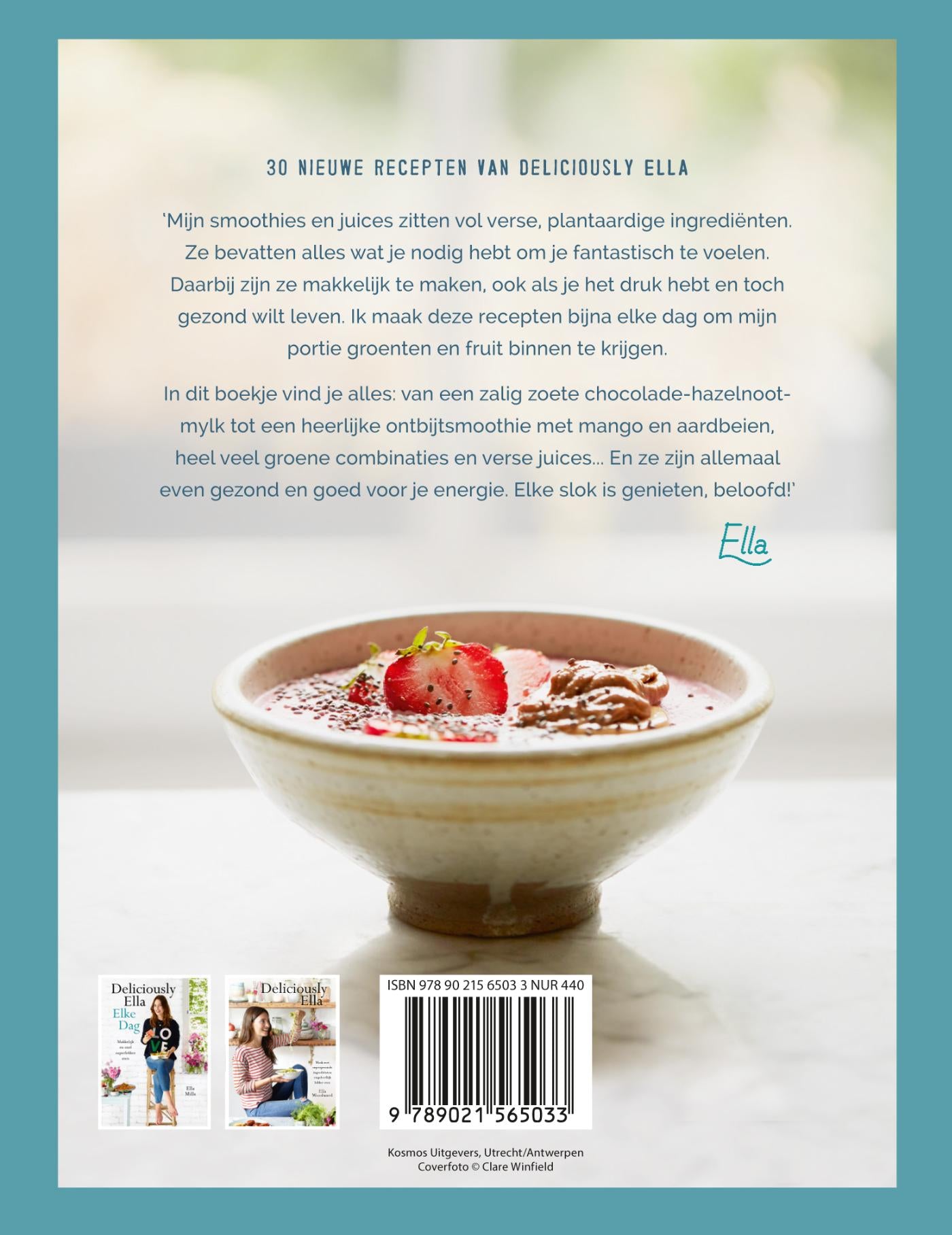‘Smoothies & Juices’ van Ella Mills (Woodward) staat vol met eenvoudige en plantaardige ingrediënten om 30 heerlijke smoothies en juices te maken. Volwaardig gezond en voedzaam. Zo klaar en superlekker. Dit is het ideale instapboek voor liefhebbers van gezonde drankjes! En omdat niet iedereen van zuiver groene smoothies houdt, voegt Deliciously Ella ook banaan, mango en cacao toe. Met elk van deze drankjes heb je al 3 tot 4 porties groente of fruit te pakken. Voor thuis of on the go.