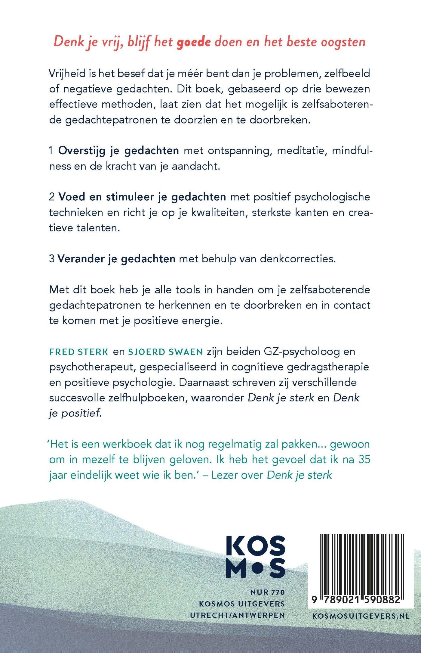 Fred Sterk en Sjoerd Swaen rekenen in 'Denk je vrij' af met zelfsaboterende gedachtepatronen. Dit boek, gebaseerd op bewezen effectieve methoden, laat zien dat vrijheid het besef is dat iedereen méér is dan zijn of haar problemen, zelfbeeld of negatieve gedachten.
