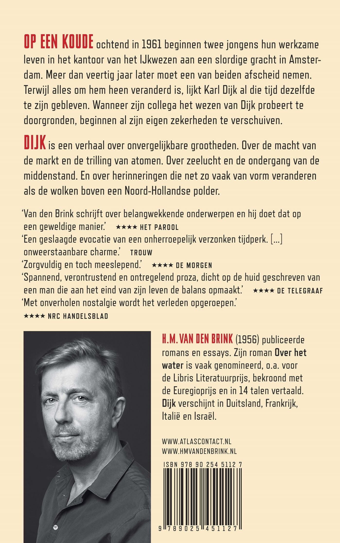 Dijk is een verhaal over onvergelijkbare grootheden. Over de macht van de markt en de trilling van atomen. Over zeelucht en de ondergang van slagers, kaasboeren en kruideniers. Over de standaardkilo van platina en iridium die voor de eeuwigheid bewaard wordt in een kluis nabij Parijs. En over herinneringen die net zo vaak van vorm veranderen als de wolken boven een Noord-Hollandse polder.