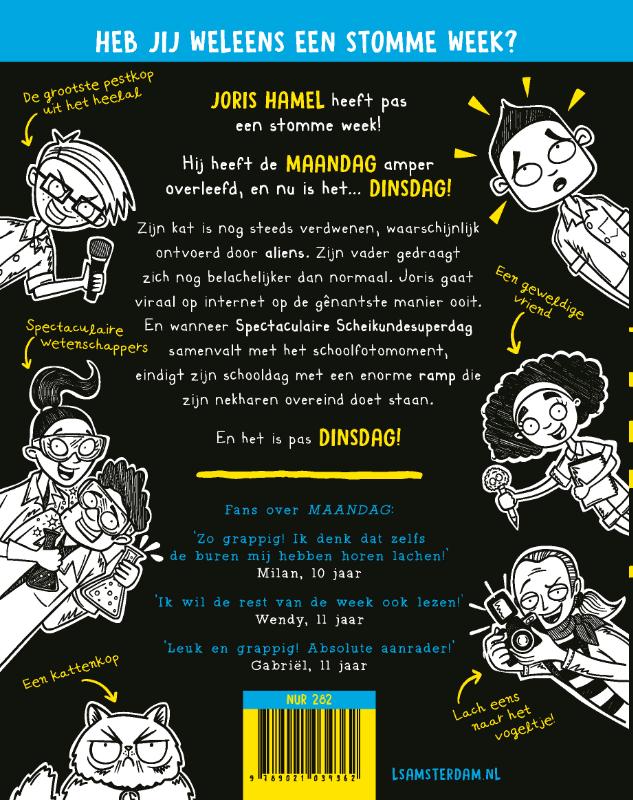 Zijn vader gedraagt zich nog belachelijker dan normaal. Joris gaat viraal op internet op de gênantste manier ooit. En wanneer Spectaculaire Scheikundesuperdag samenvalt met het schoolfotomoment, eindigt zijn schooldag met een enorme ramp die zijn nekharen overeind doet staan. En het is pas dinsdag!