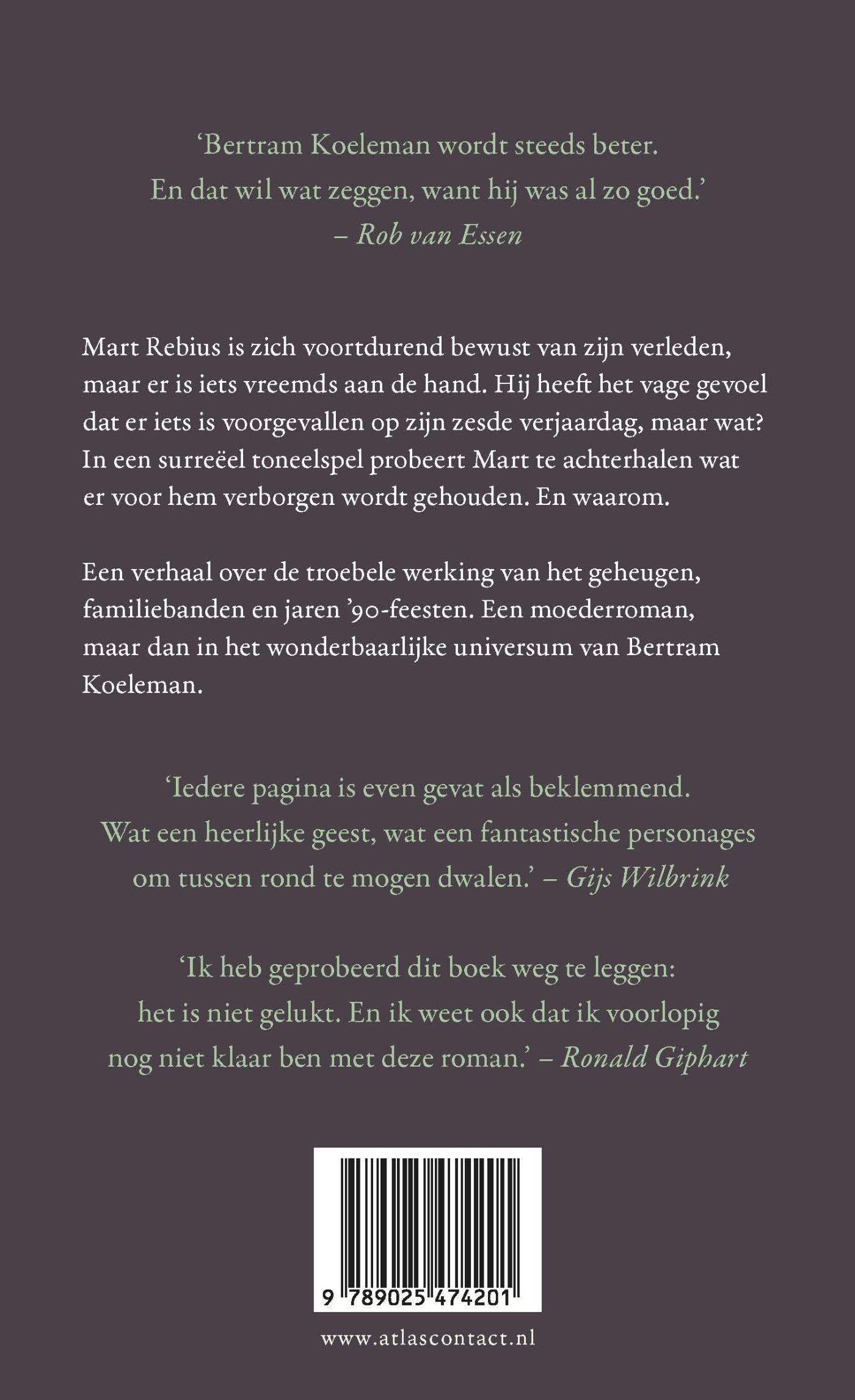 Wanneer zijn vader overlijdt en herinneringen hem terugdrijven naar zijn jeugd, raakt Mart Rebius ervan overtuigd dat hij iets essentieels over zijn verleden is vergeten. Geobsedeerd door visioenen en halve herinneringen besluit hij tot een reconstructie. Hij koopt zijn ouderlijk huis, huurt acteurs in als zijn familie en laat ze de middag van zijn zesde verjaardag naspelen. Op dat feestje is er iets belangrijks gebeurd, gelooft hij. Iets wat hem toegang zal geven tot een deel van zijn leven dat tot nu toe onbereikbaar is geweest. Al snel volgen raadselachtige gebeurtenissen elkaar in hoog tempo op, Mart gaat twijfelen aan zijn herinneringen. Heeft hij alles verzonnen?