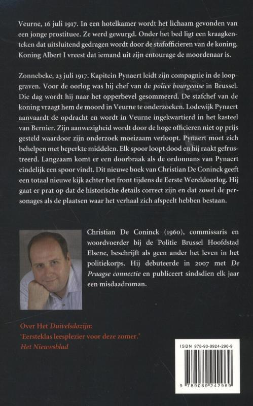 Dit nieuwe boek van Christian De Coninck geeft een totaal nieuwe kijk achter het front tijdens de Eerste Wereldoorlog. Hij gaat er prat op dat de historische details correct zijn en dat zowel de personages als de plaatsen waar het verhaal zich afspeelt hebben bestaan.