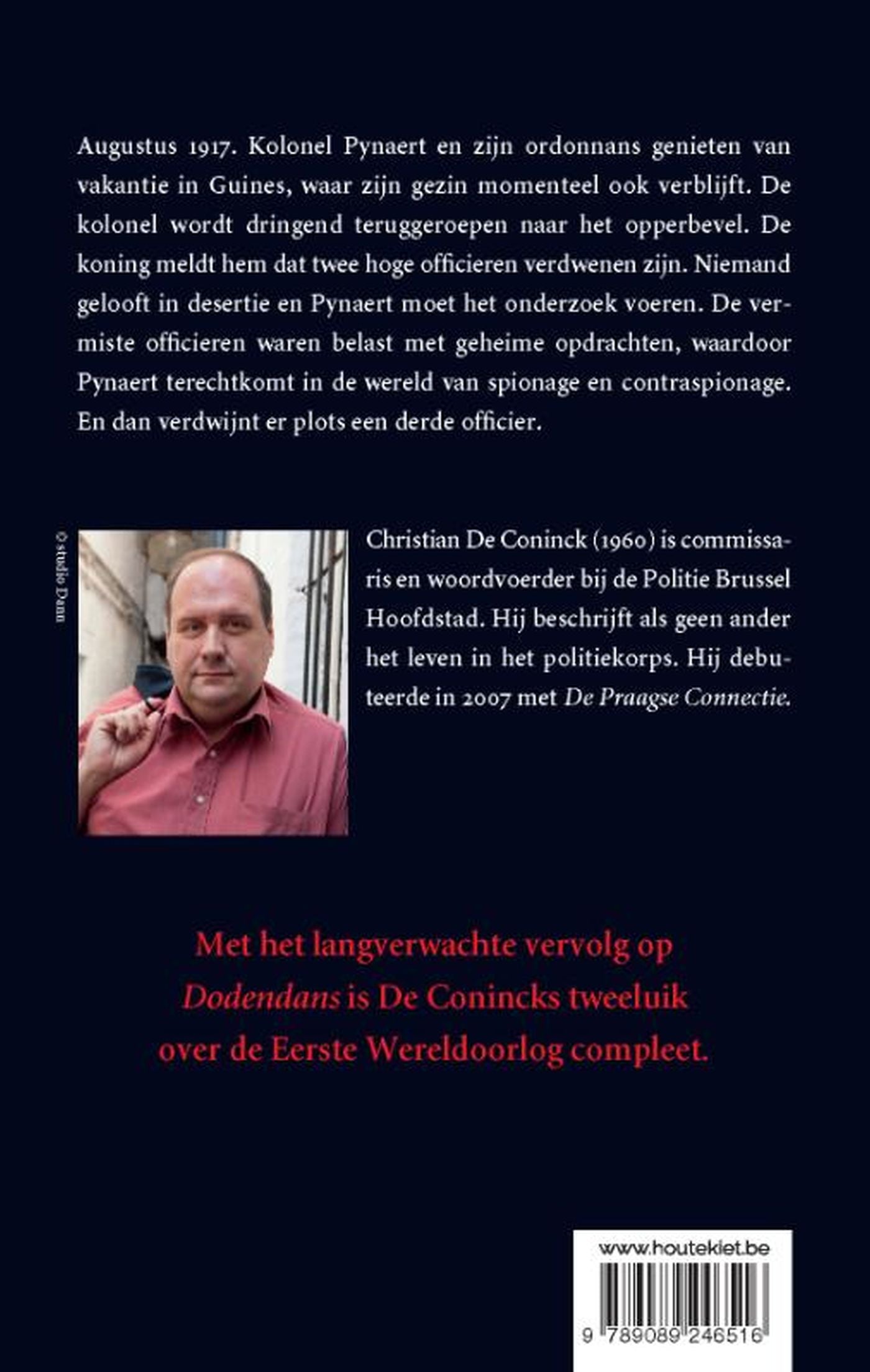 Augustus 1917. Kolonel Pynaert en zijn ordonnans genieten van vakantie in Guines, waar zijn gezin momenteel ook verblijft. De kolonel wordt dringend teruggeroepen naar het opperbevel. De Koning meldt hem dat twee hoge officieren verdwenen zijn. Niemand gelooft in desertie en Pynaert moet het onderzoek voeren. De vermiste officieren waren belast met geheime opdrachten, waardoor Pynaert terechtkomt in de wereld van spionage en contraspionage. En dan verdwijnt er plots een derde officier.