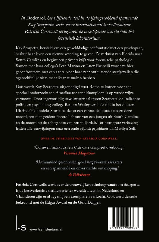 Patricia Cornwells werk over de vrouwelijke patholoog-anatoom Scarpetta is de bestverkochte thrillerserie ter wereld. Ook werd de serie bekroond met de Edgar Award en de Gold Dagger.